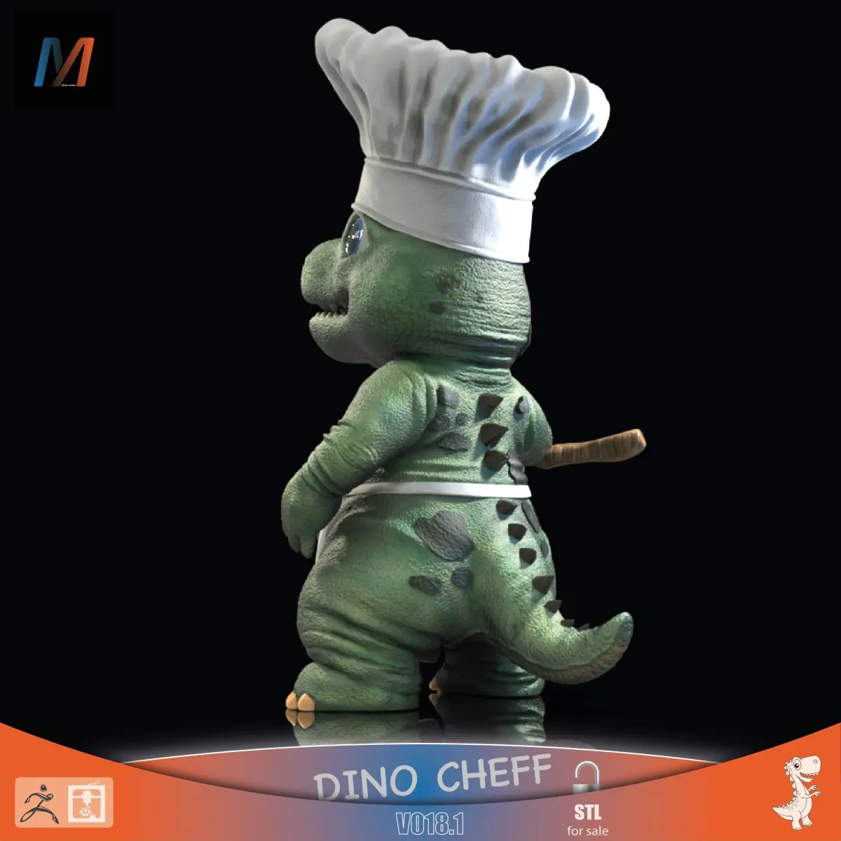 DINO CHEFF Hello! We present you our version of the DINO CHEFF so popular lately. This version has details of excellent level so that you take your impression to stand out. Prints in Filament (FDM) or Resin, any of the two options are a success with this version. We hope you like it and if you need other customized models, don't hesitate to contact us!