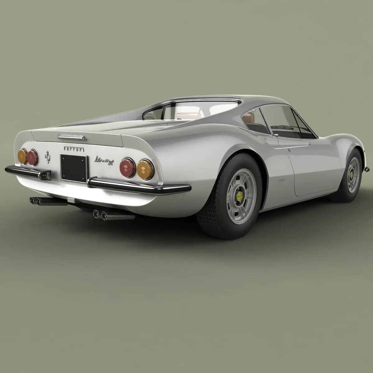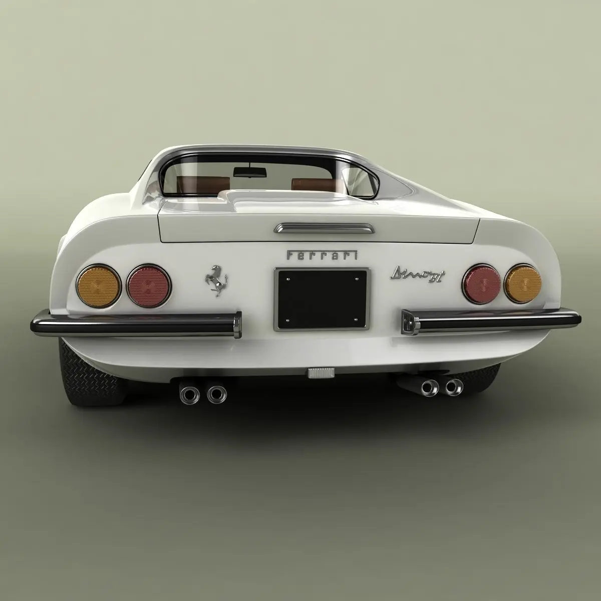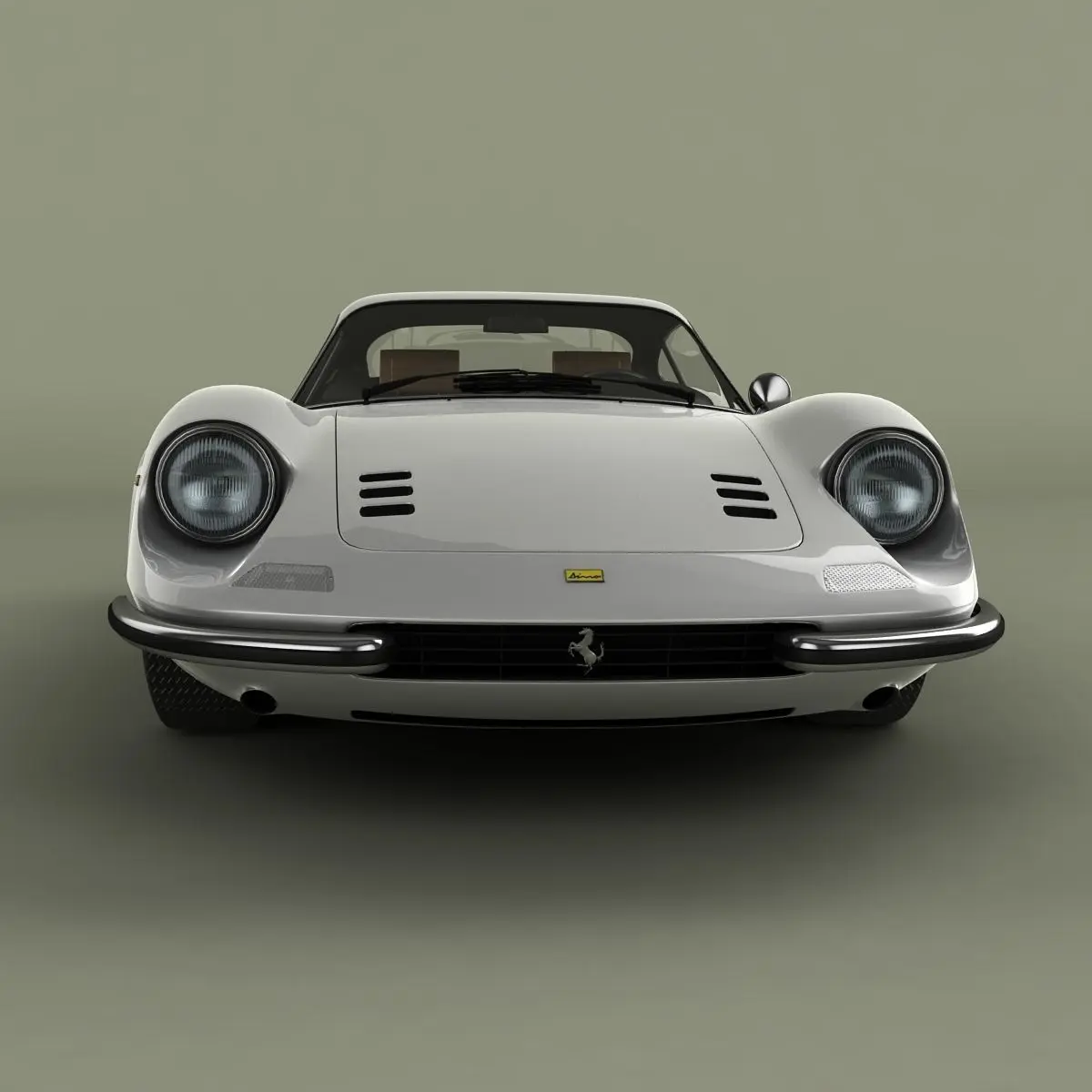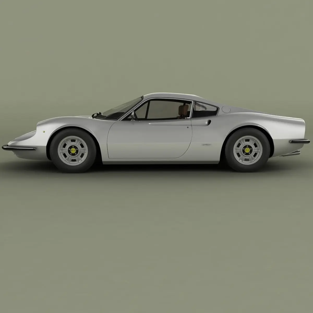 High detailed, correctly scaled model of Dino Ferrari 246 GT. Originally created with 3ds Max 8. Rendered with V-Ray, files with standard materials are included. Unit system is set to metric units. Model is built to real-world scale. Geometry is Editable Poly (quads/tris only). TurboSmooth is use separately to objects ( 84 of 133 named objects) with iterations 2 ( 1148208 polys, 60315 vert.) Each file was checked before upload.Materials and textures are included (7 textures - jpg 1024X1024).