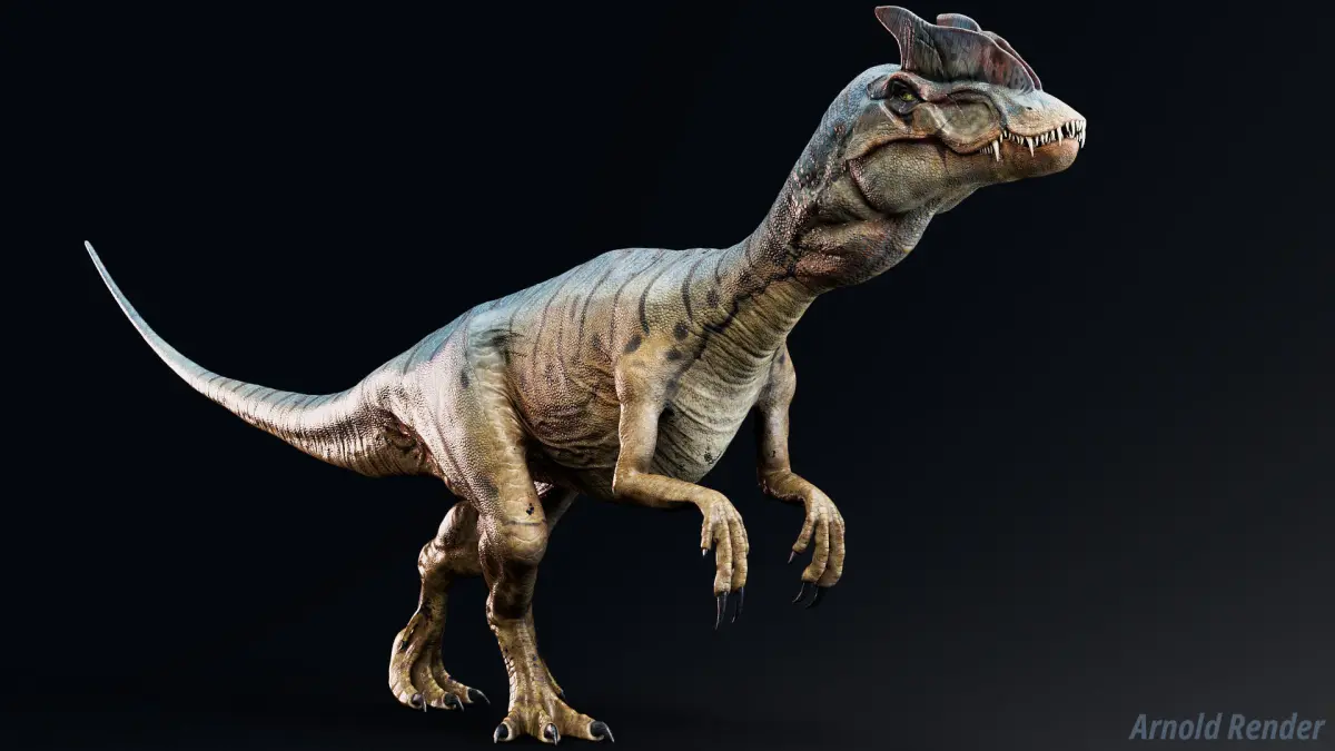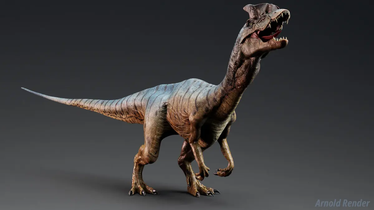 This model is completely a product of imagination. Dinosaur Hybrid Dilophosaurus PBR Project .In reality, Dilophosaurus were around 7 meters in size and were afraid of Ceratosaurus and Allosarurus. This model is a larger wild Hybrid Dilophosaurus with a more developed venom sac in its throat.