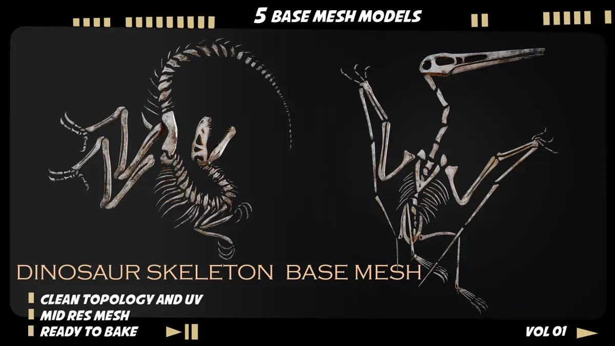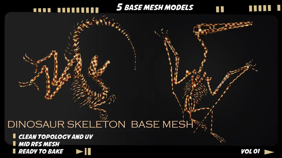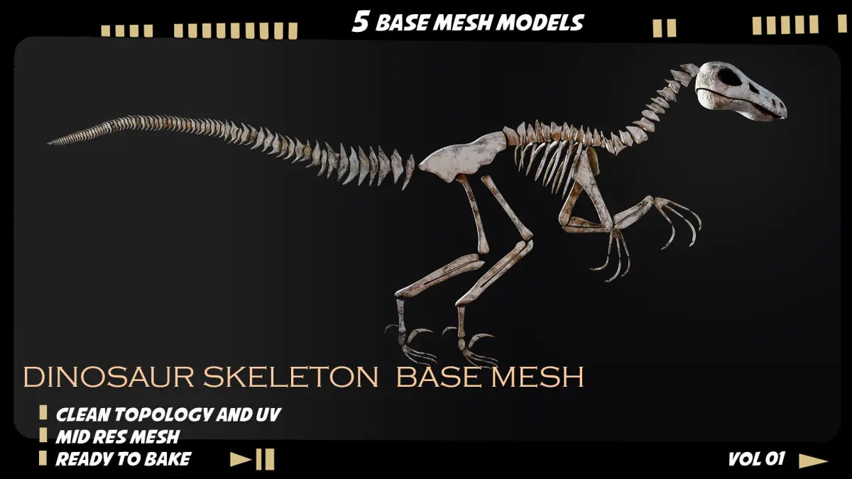 Dinosaur skeleton base mesh-vol 01 Low-poly 3D model