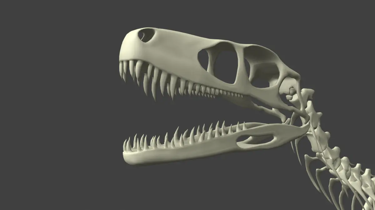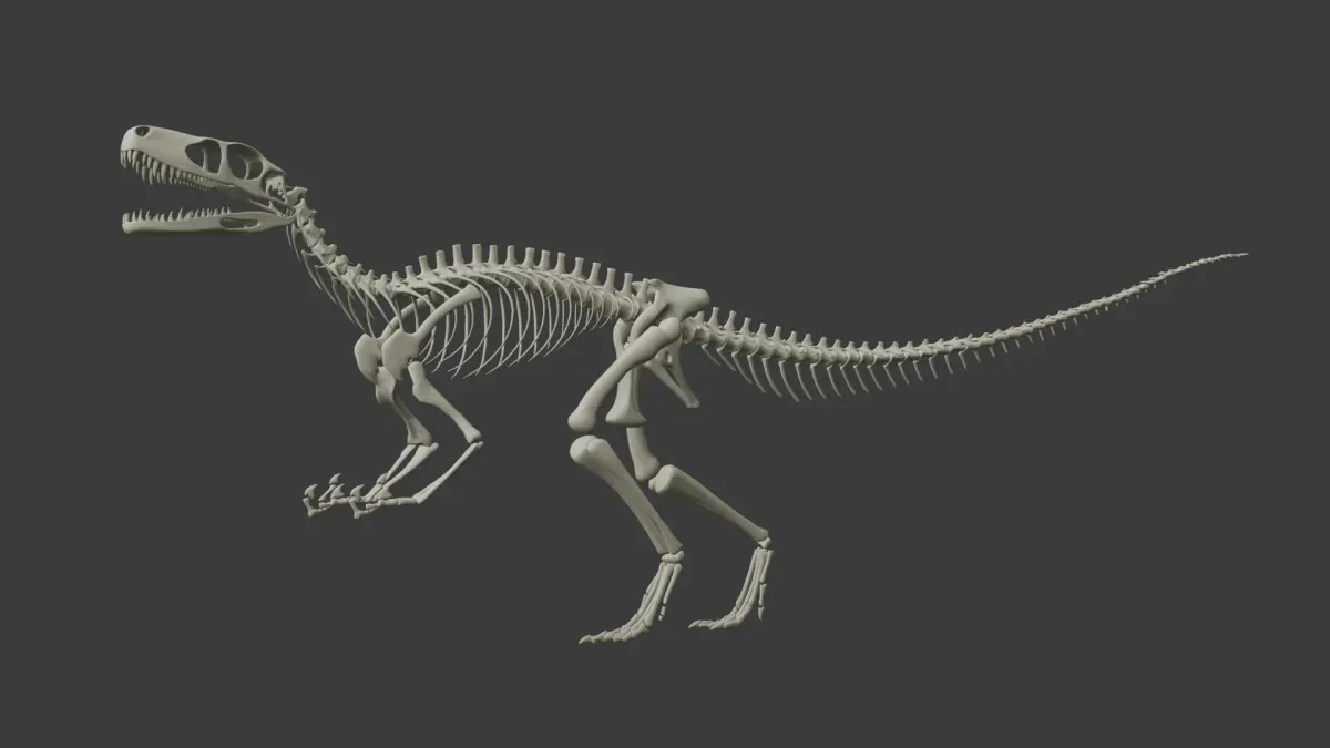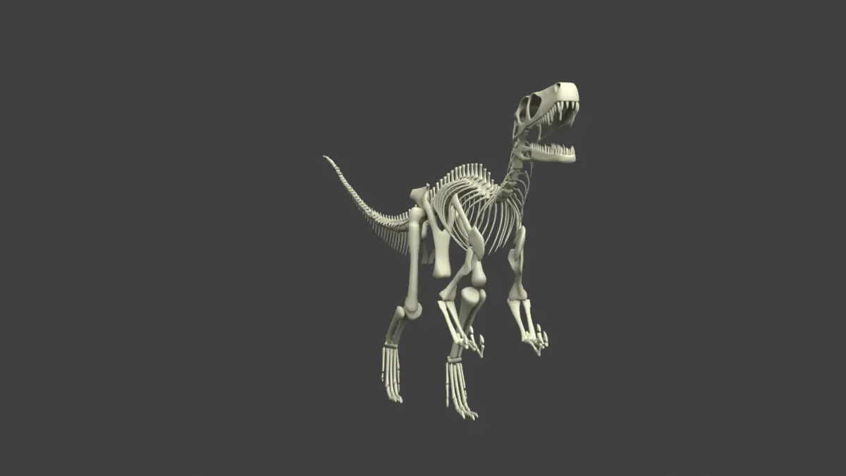 Model after brasilian dinosaur Gnathovorax cabreirai, one of the first dinosaurs to has ever existed, and reminiscent of predators like T-rex and Deinonychus, better know as velociraptor. The 3D model is based on the illustration of the original paper discribing it after it's discovery, making it an accurate depiction based on the current scientific knowledge we have, with exceptions in a few proportions and bone shapes.