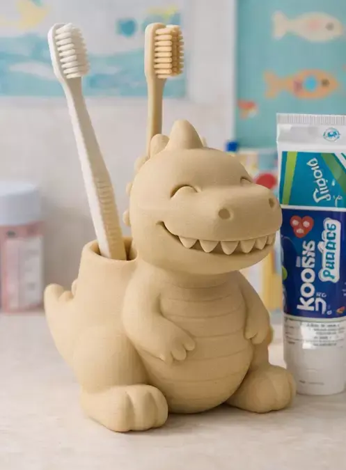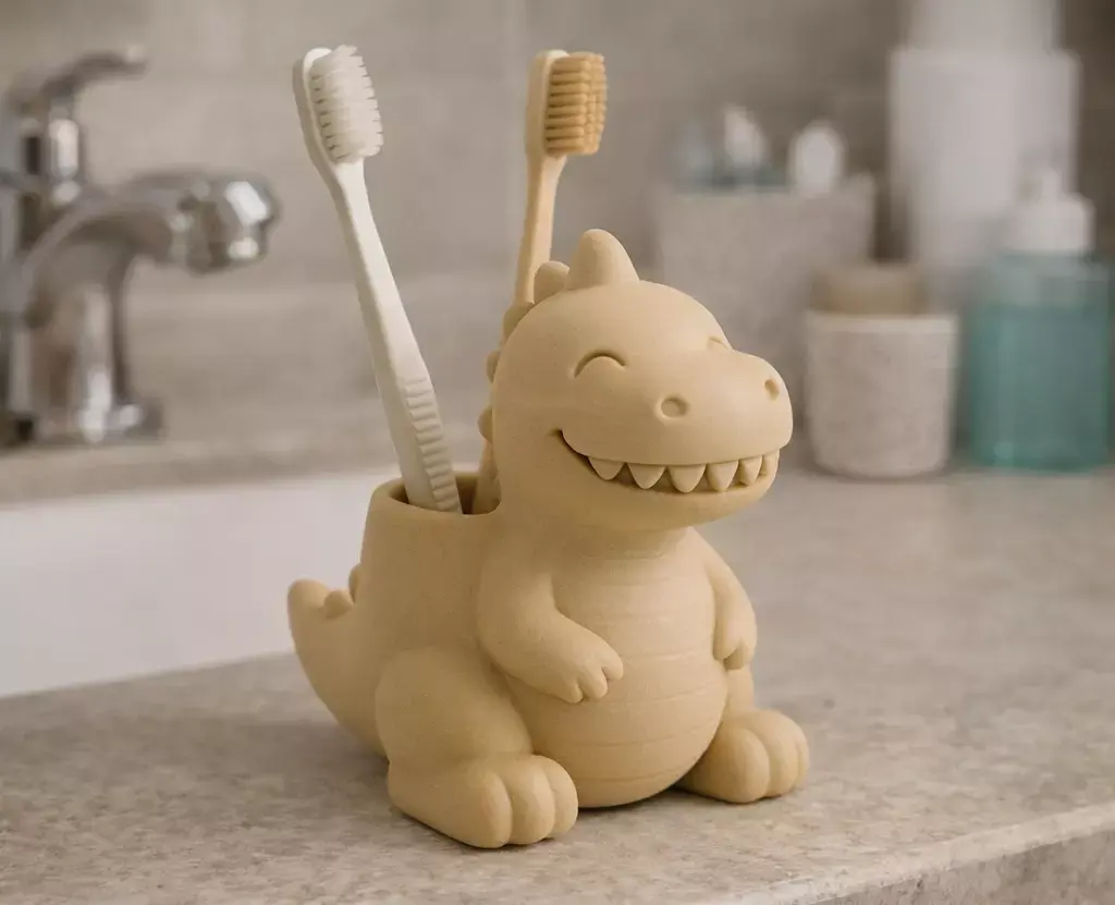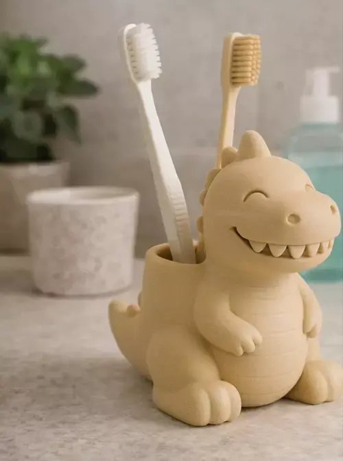 This charming Dinosaur Toothbrush Holder adds a playful yet functional element to bathroom spaces. Designed with a friendly cartoon dinosaur shape, it holds toothbrushes neatly while serving as an eye-catching decorative accent.