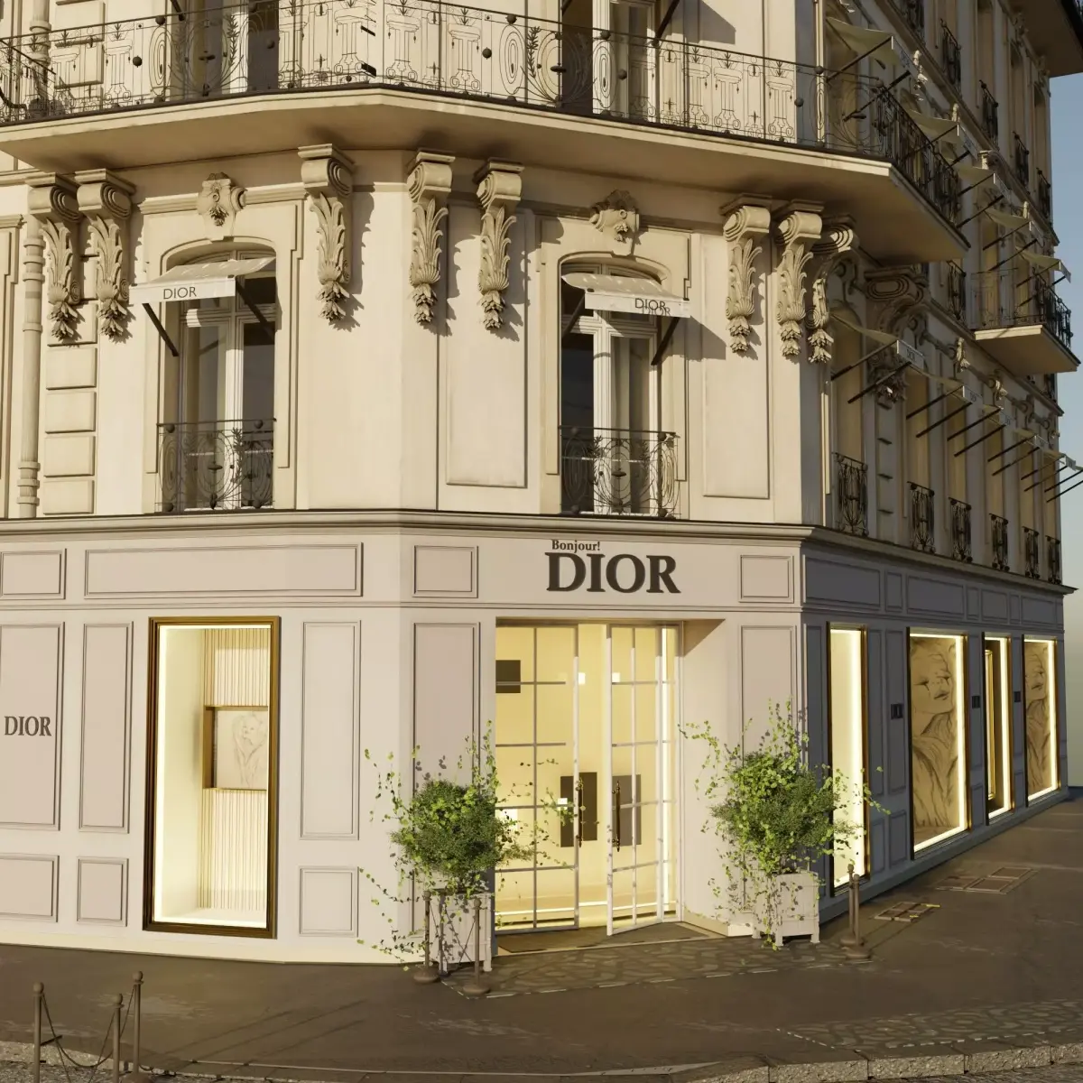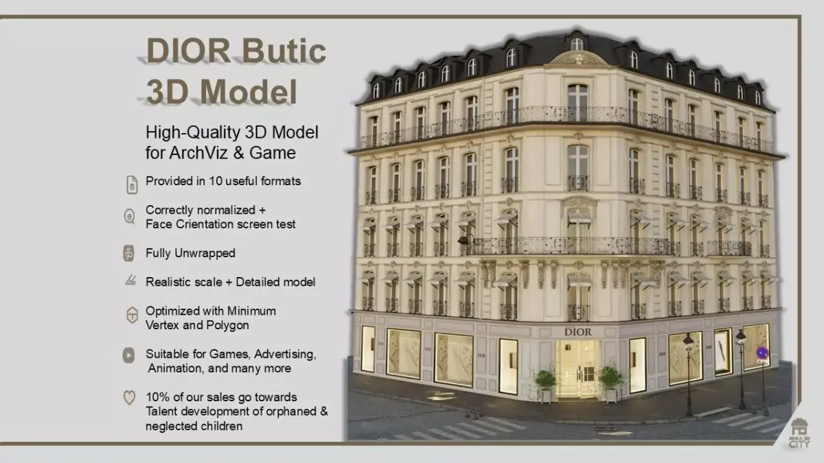 A high-quality 3D model of the iconic Dior Boutique in Paris (Avenue Montaigne) – crafted with precision and realism.