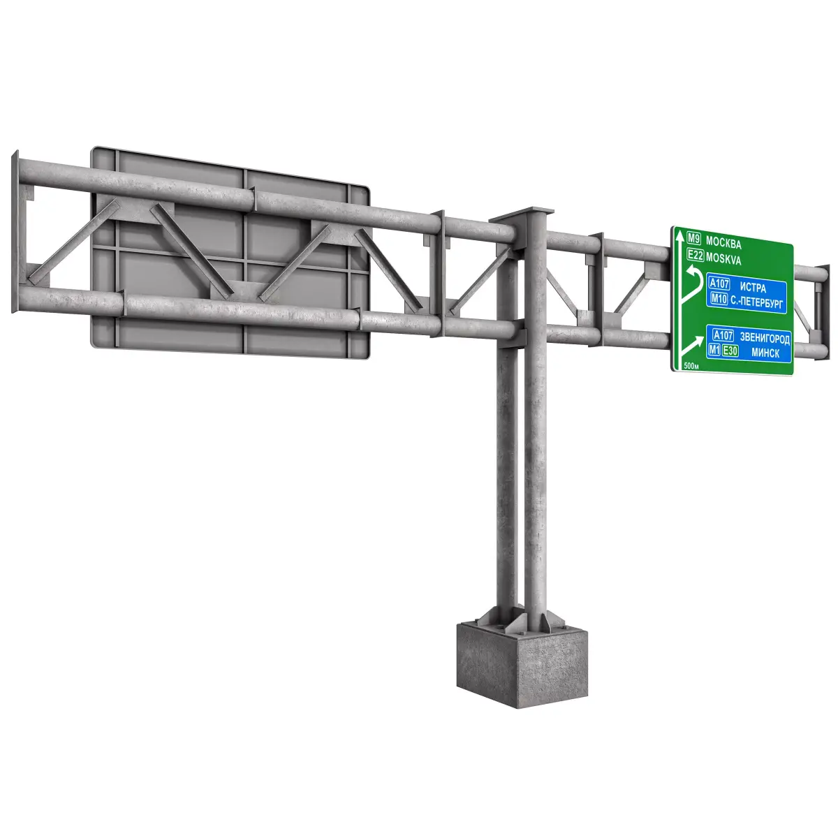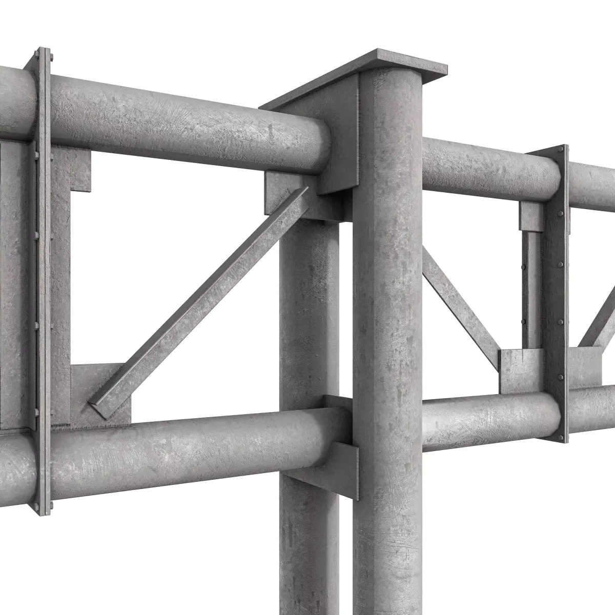 The crossbar is the horizontal part, parallel to the road, to which a metal road sign is attached using a system of clamps.