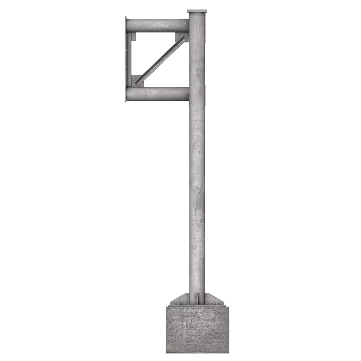 It consists of two main elements: a shaft and a crossbar. The crossbar is the horizontal part, parallel to the road, to which a metal road sign is attached using a system of clamps.