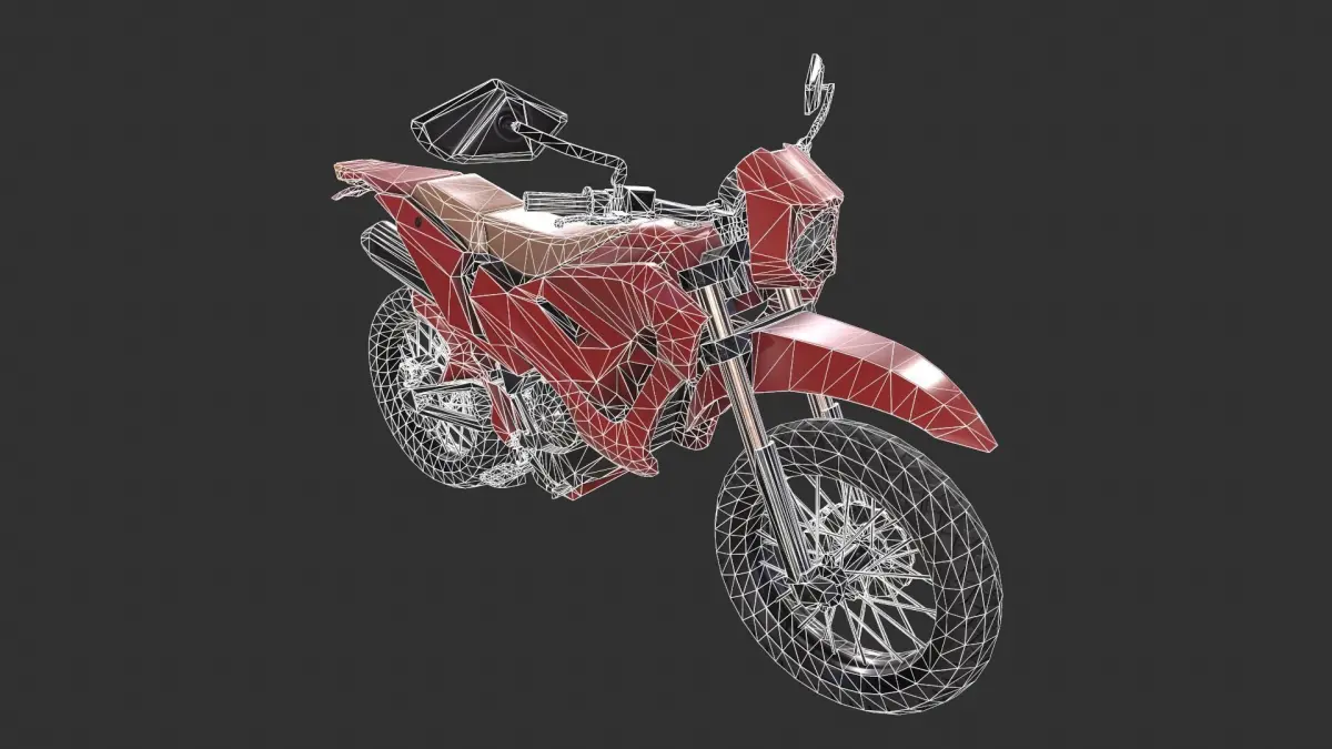 Game-ready Dirt Bike asset, with PBR textures included in the files. This has 8897 polys (15890 tris) and 8731 vertices.