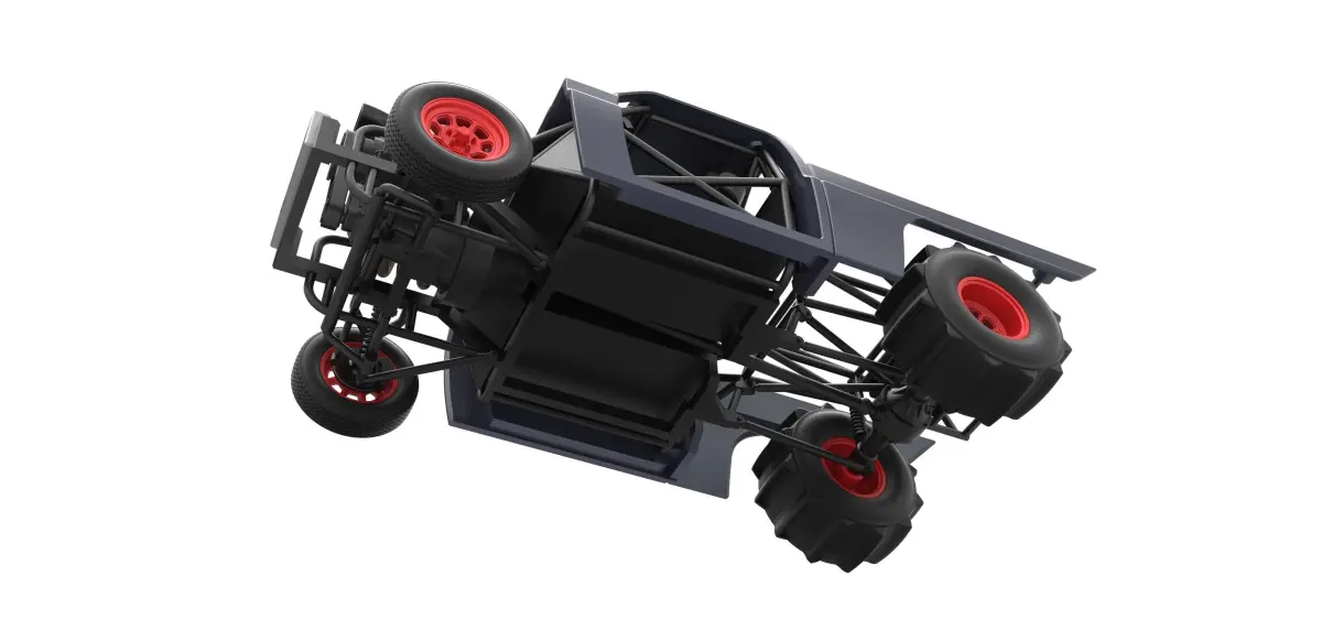 The model consists of parts: Air intake, Body, Engine, Front rims, Front tires, Left exhaust pipes, Radiator, Rear rims, Rear tires, Right exhaust pipes, Seat, Shell front part, Shell rear left part, Shell rear right part, Shifter, Steering wheel, Tank.