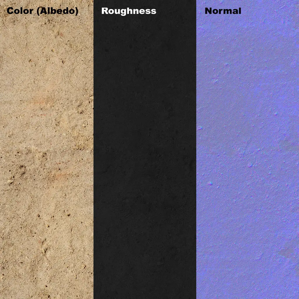 - There are 3 maps. Albedo, Normal, Roughness maps