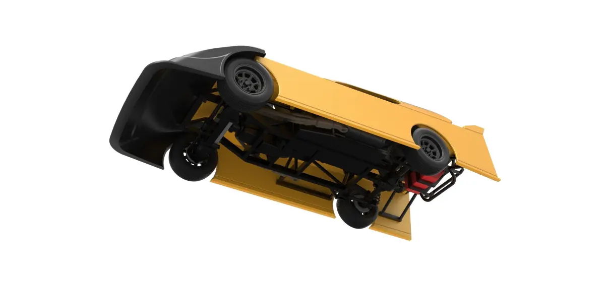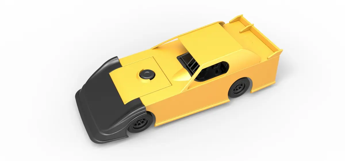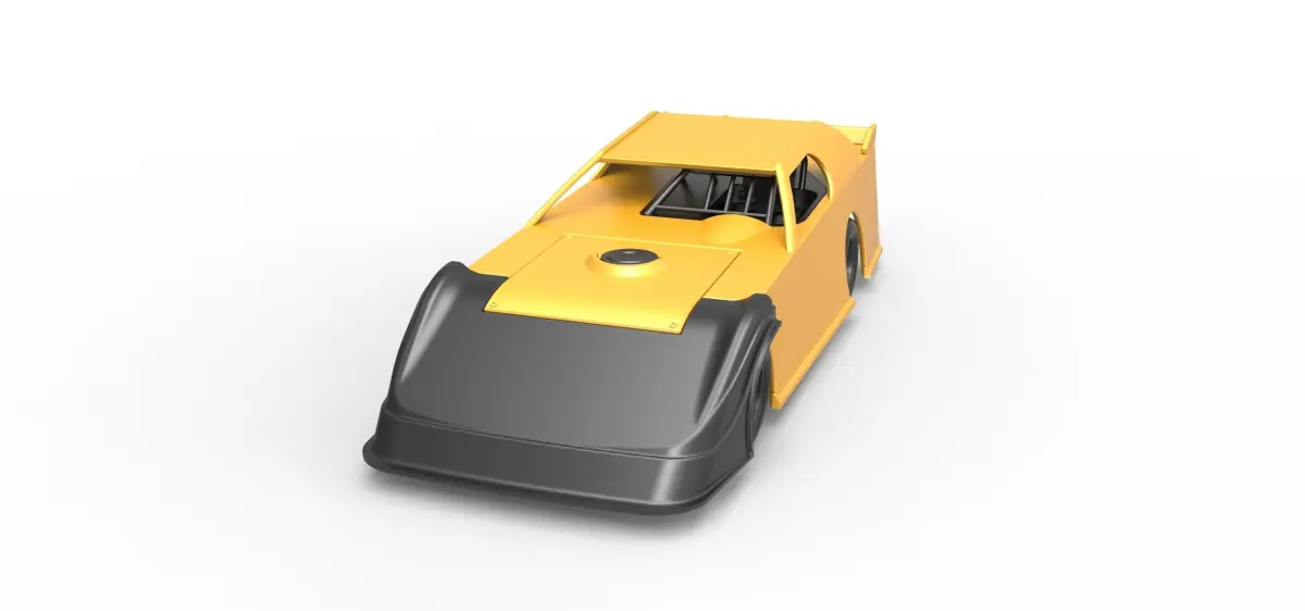 The model consists of parts: Air filter cap, Air filter, Body, Engine, Hood, Left exhaust pipes, Radiator, Right exhaust pipes, Rims, Seat part 1,2, Shell part 1,2, Shifter, Steering wheel, Tank, Tires, Upper bar.