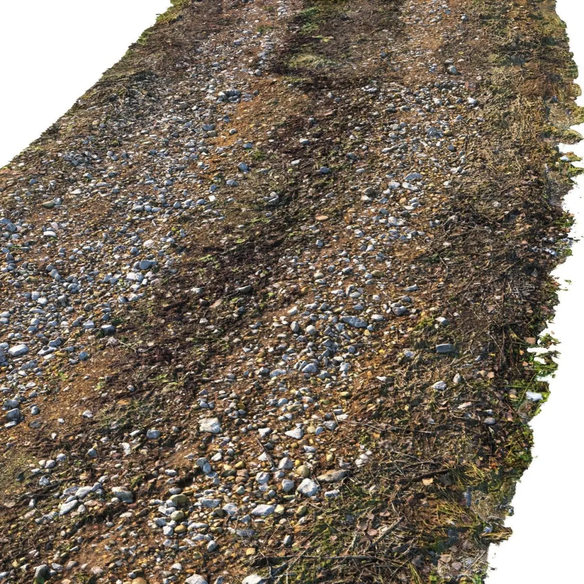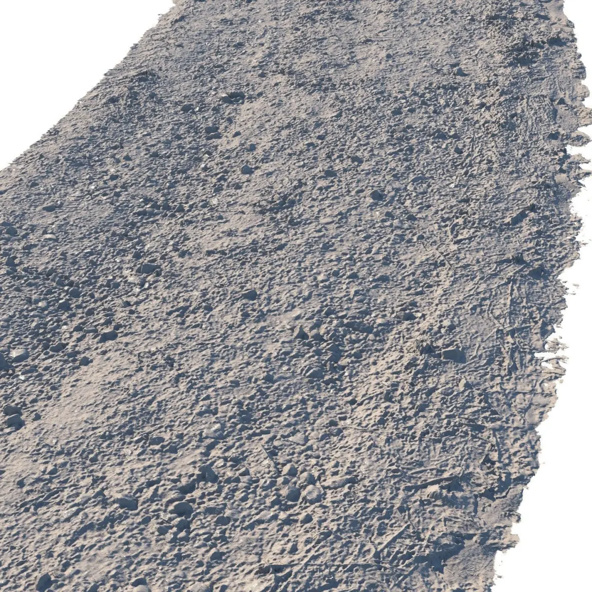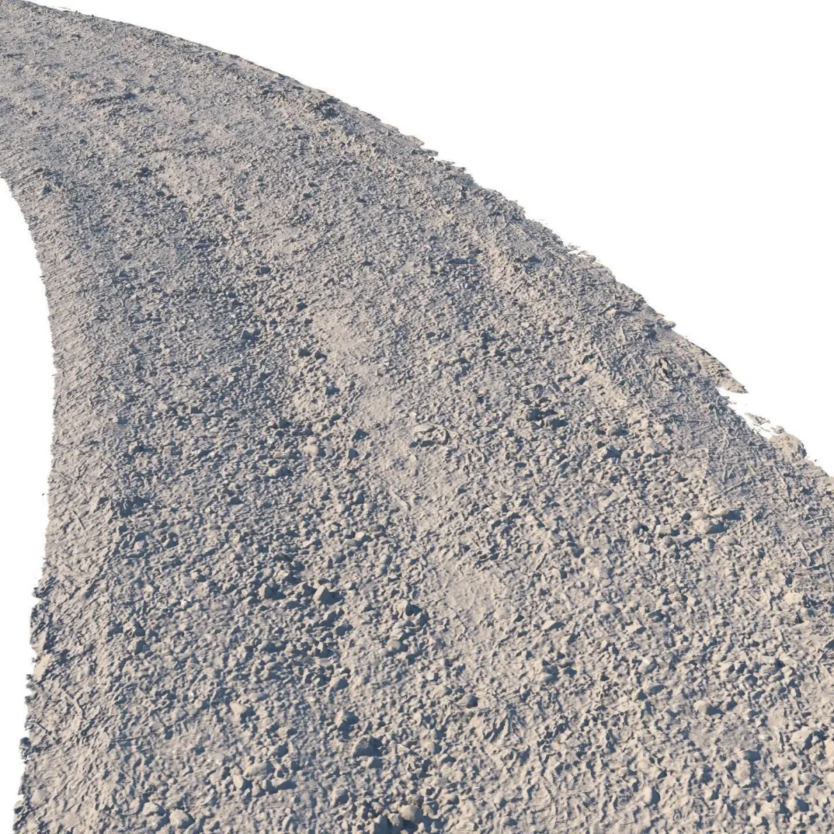 The single-lane dirt road is made using a seamless material with displacement. Red clay with stones and crushed grass between the tracks.