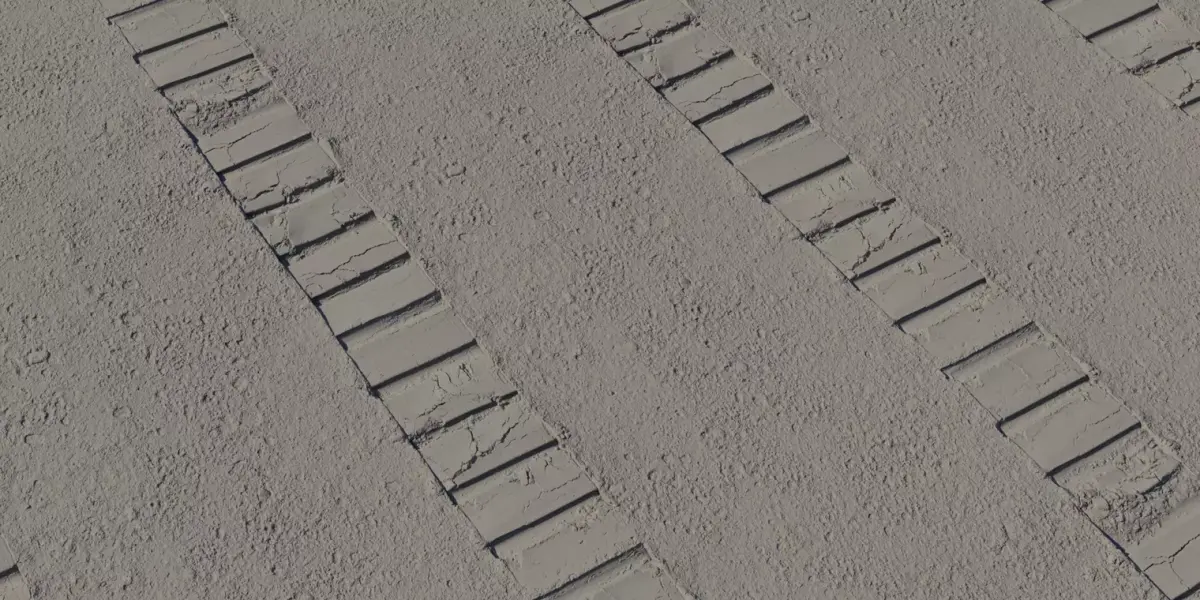 A production‑ready, tileable dirt road material featuring repeating heavy vehicle track plates embedded in compact soil, perfect for construction sites, tank trails, and industrial set dressing. The surface balances smooth compressed lanes with granular shoulder noise and cracked plate edges so large areas tile cleanly without obvious repetition in games and VFX. Delivered as calibrated 4K PBR maps—BaseColor, Normal (OpenGL), Roughness, Height/Displacement, and Ambient Occlusion—compatible with Blender, Unreal Engine, Unity HDRP/URP, Substance, V‑Ray, and Corona. Use the Height map for parallax or true displacement to emphasize the plate steps and ruts, and adjust Roughness to art‑direct from dusty matte to slightly damp soil depending on lighting and weather. Ideal for military yards, construction corridors, logistics routes, and any environment needing readable directional tracks with strong storytelling and performance.