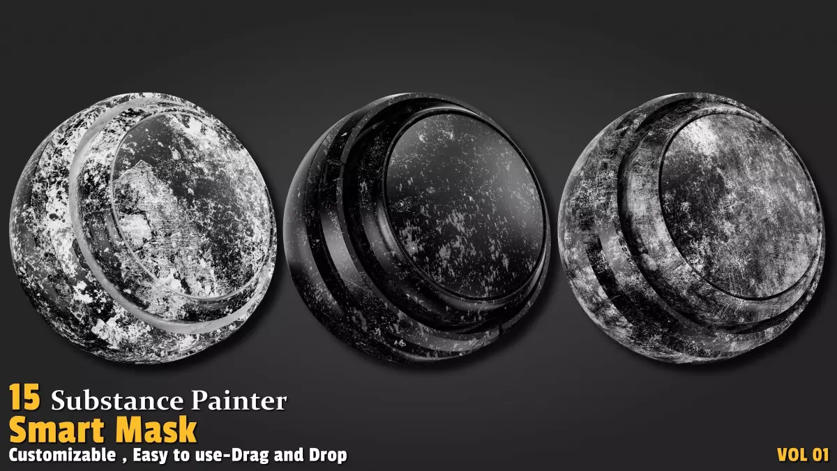 Simply copy the SPSM files into the Smart Masks shelf in Substance Painter and drag them onto any mask layer. All parameters are fully adjustable.