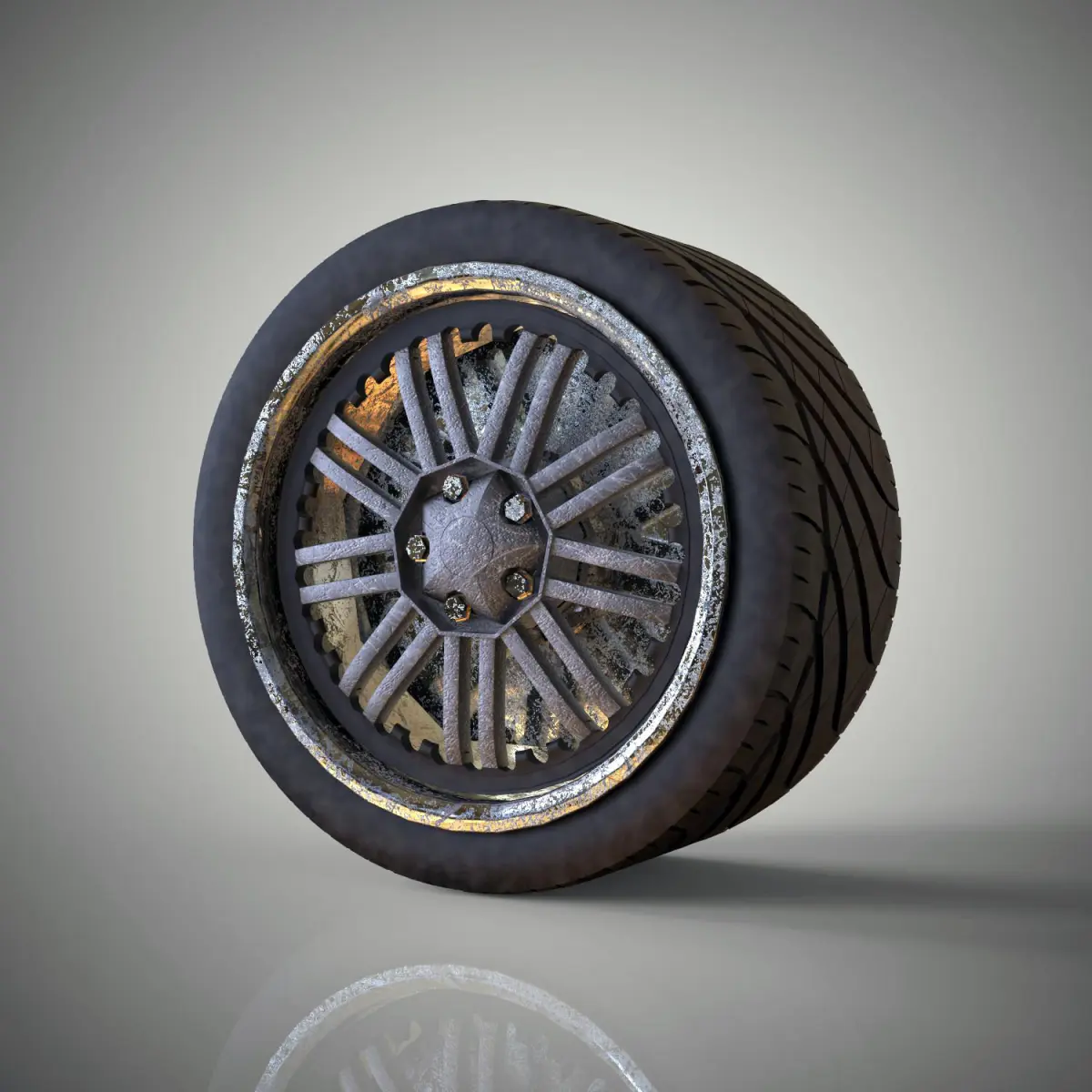 Here is a 3d model of dirt tyre including materials