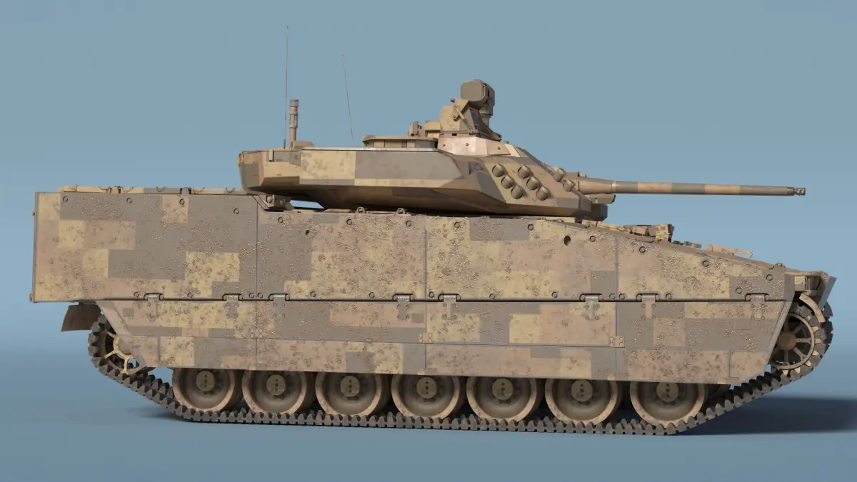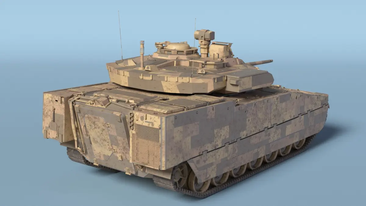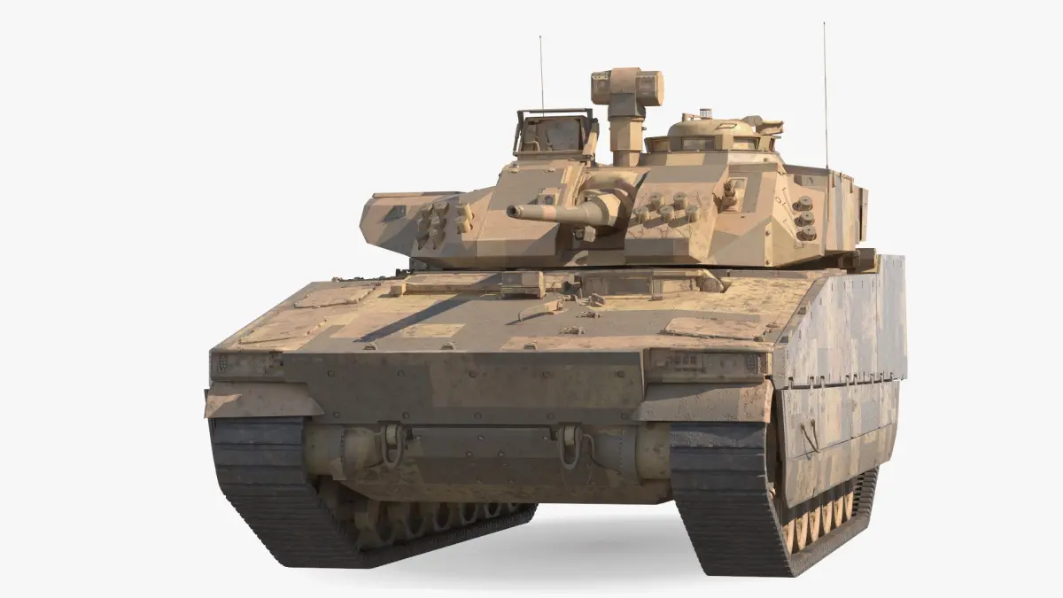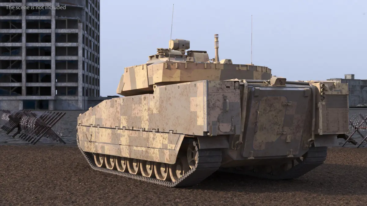 Dirty Armored Tank Vehicle Sand Camouflage is a three-dimensional model of a modern military armored fighting vehicle, known for its advanced design and battlefield capabilities.