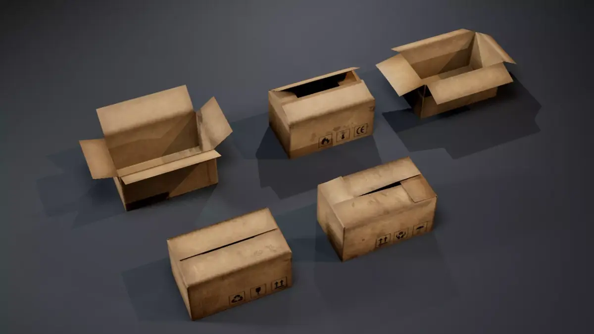 Dirty Cardboard Boxes Set includes five types game-ready cardboard boxes, in three different sizes. These props are perfect for industrial environments, warehouses, loading areas, construction sites, post-apocalyptic settings, or any scene that needs realistic clutter. Use these boxes to quickly populate industrial scenes with believable and detailed environmental props.