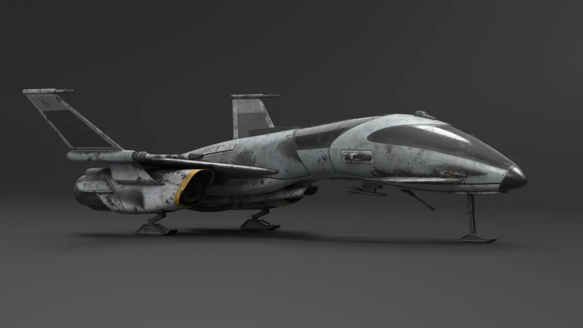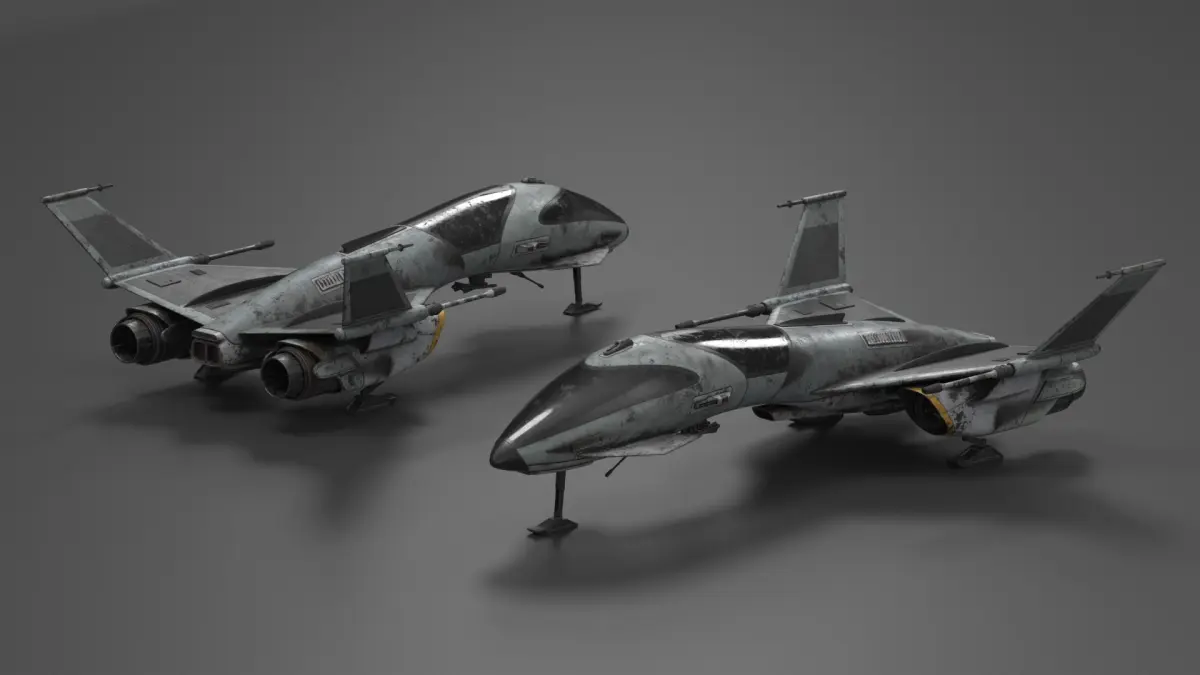 Dirty Futuristic Fighter Spaceship Rigged for Cinema 4D is a 3d model of heavily modified and battle-worn starfighter that embodies a gritty aesthetic.