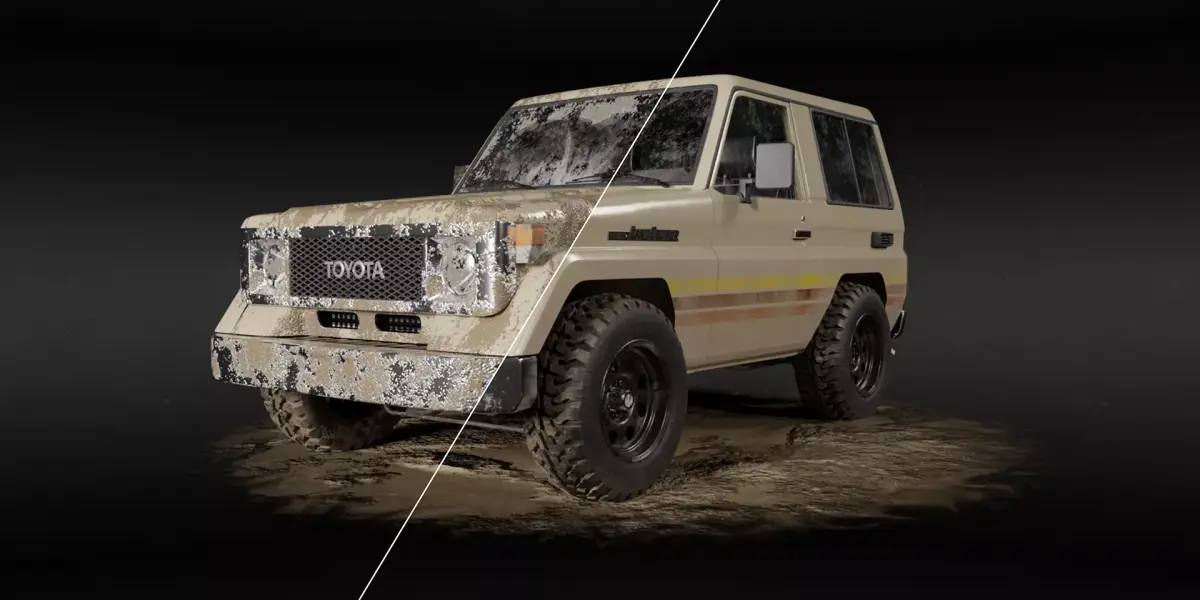 Toyota Land Cruiser LJ70 – High-Detail 3D ModelHighly detailed Toyota Land Cruiser LJ70 3D model with great attention to both exterior and interior details.Created using a UV/UDIM workflow with 4 UDIM tiles and an optimized quad mesh topology, ensuring clean geometry and high-resolution texturing for close-up renders and cinematic projects.Features:Accurate exterior and interior modeling2 unique skins: Muddy and Dirty versionsUV/UDIM workflow for high-resolution textures and clean layoutOptimized quad mesh topology for smooth subdivision and efficient performancePBR-ready materials for compatibility with all major render engines and 3D softwareTexture Maps: Base Color-Normal-Roughness-Metallic-Height-Glass transparentFile Formats:.blend.fbx** Attention:For the FBX version, you must manually assign the textures using the UDIM workflow setup.**