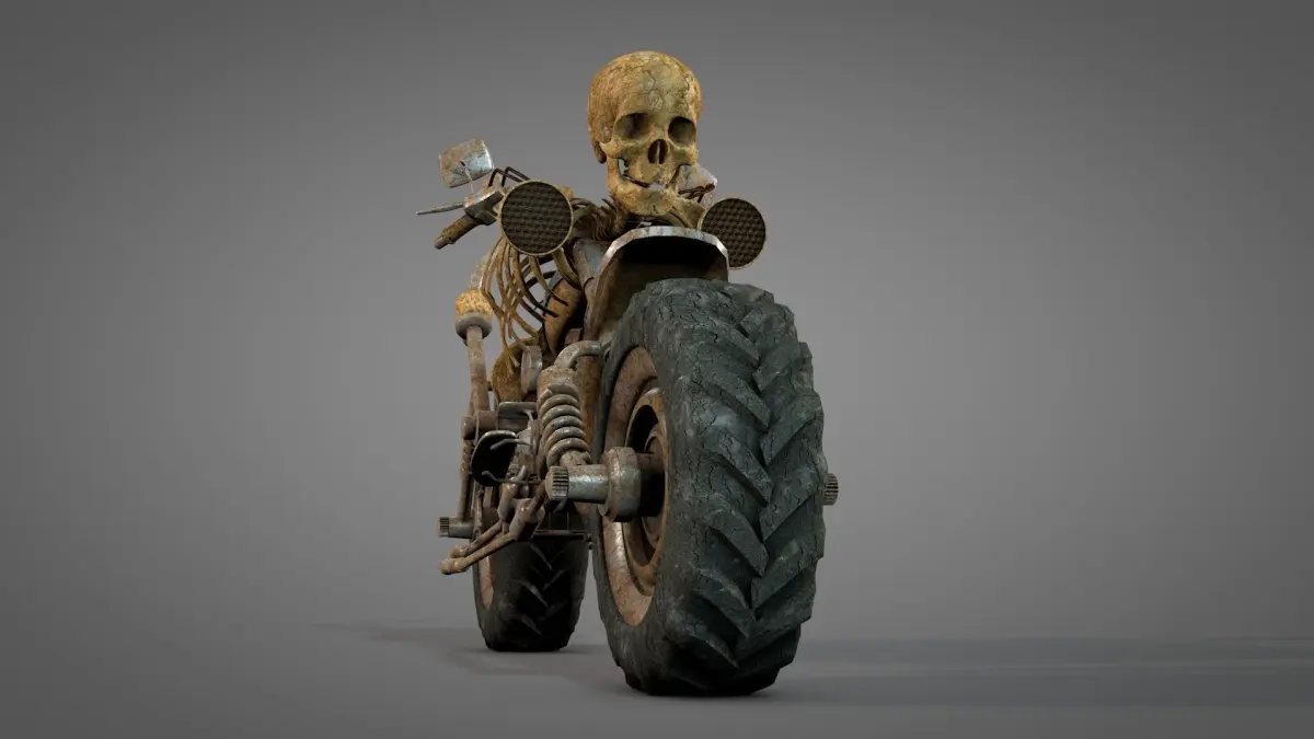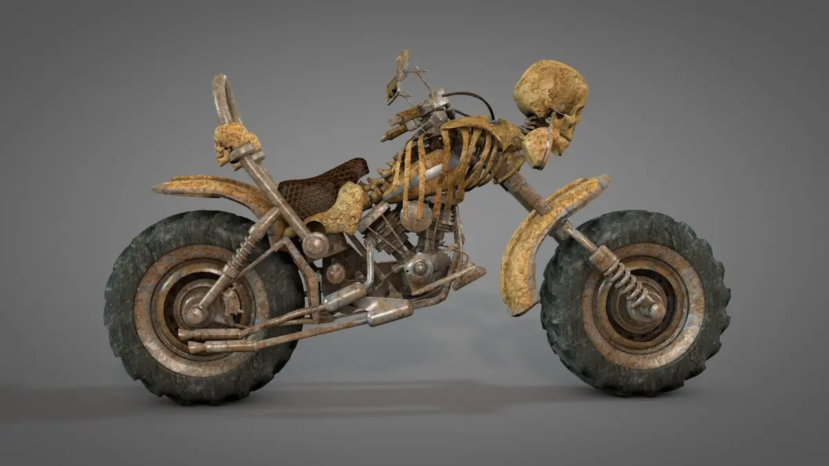 skullbike3.C4D has connected objects and baked textures. This format needs UVTEX folder for materials.
