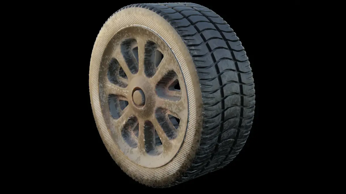 Dirty wheel and rim 3D model