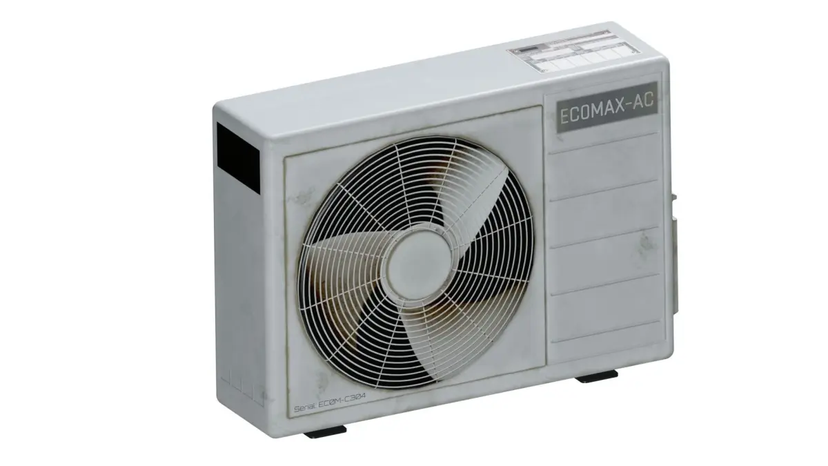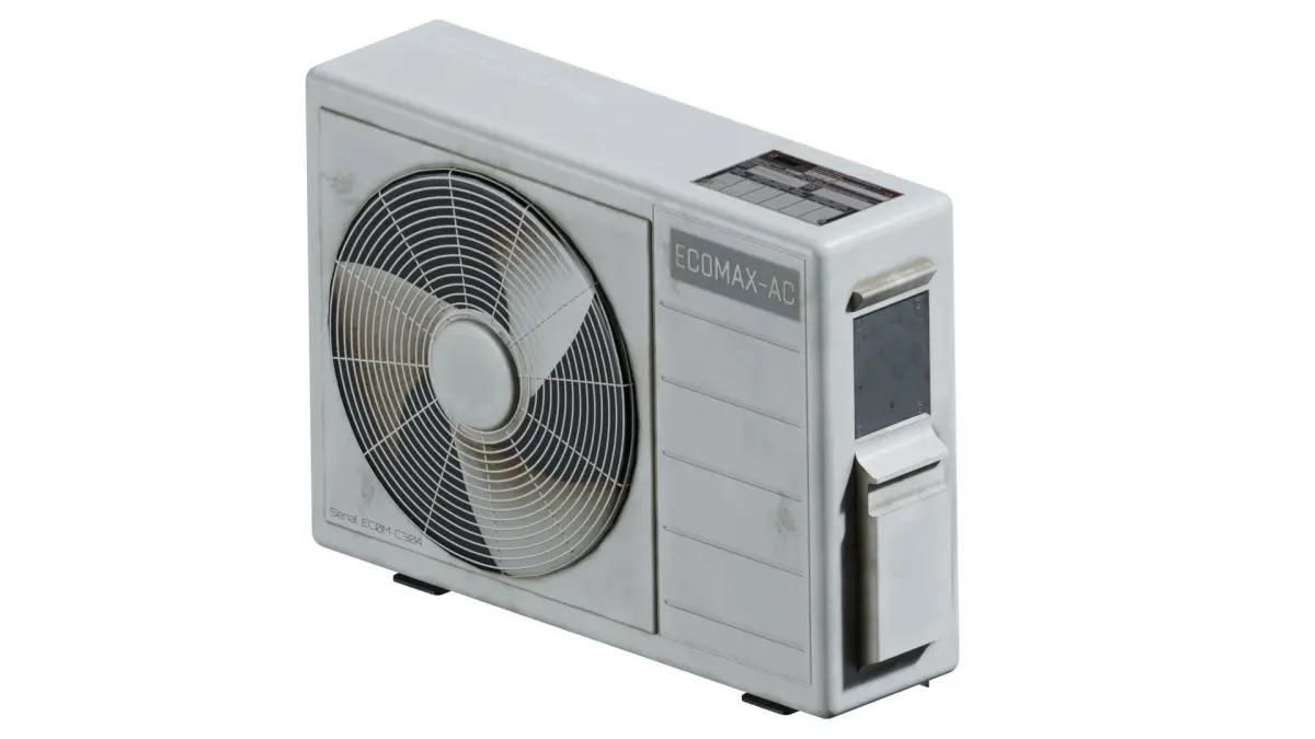 Description: A commonly found AC-Unit with traces of heavy use and wear on it, manufactured by the fictional brand EC0MAX.