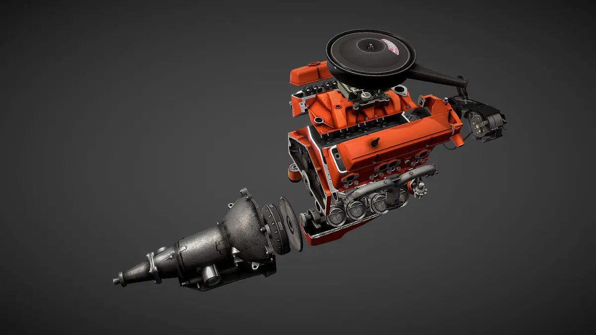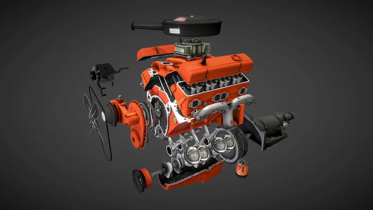 High accuracy V8 engine model, full textured. Game-ready lowpoly geometry.