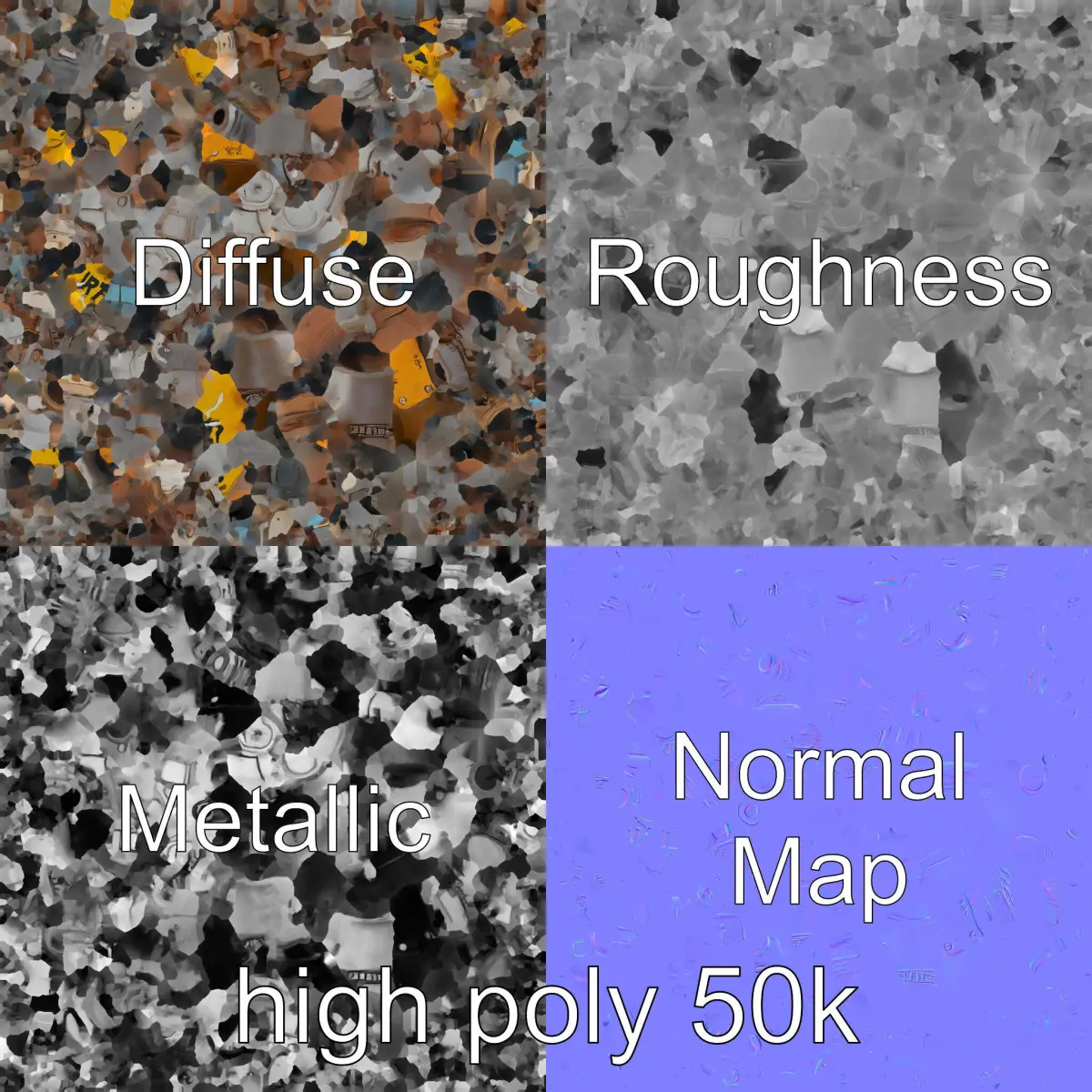 Each model has 3 levels of detail: low-poly, middle-poly, and high-poly, which allows for the use of this model in production rendering (such as 3ds max, Maya, Cinema4d, Blender, Vray/Corona/Cycles and all other), game engines (Unity and Unreal compatible), and interactive presentations, providing a choice of detail based on the LOD System principle. This model is ideal for creating urban and industrial scenes, virtual reality experiences, and post-apocalyptic landscapes. The model's textures are PBR, Diffuse, NormalMap, and reflection/roughness/metallic, which are suitable for any modern rendering engine. All models are accurately unwrapped and have no overlapping UV. All textures are 4096*4096 in size. Enjoy using this model and if you like it, please leave a comment and a like!