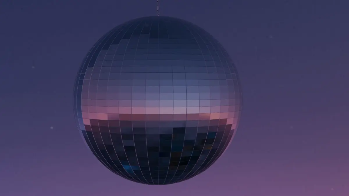 A nice Discoball with a chain attached to it so it can be put onto a ceiling.