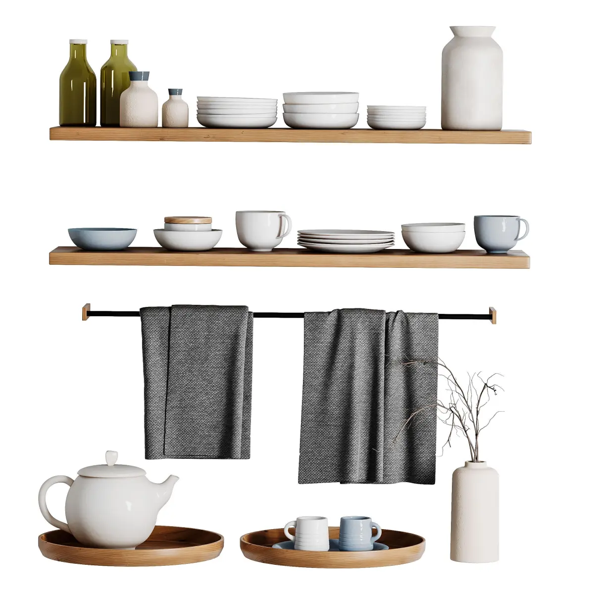 Name: Dish 10Type: modelFormat: 3Ds Max 2016Export: FBX, OBJRender: Corona Renderer 10Polys: 186014Verts: 102174Units: CentimetersDimension: 106.04 x 49.37 x 114.68Description: A meticulously crafted kitchen decor scene featuring a complete shelf setup with ceramic dishes, cups, bowls, plates, glass bottles, a minimalist teapot, wooden trays, and linen towels. The composition is perfect for styling modern kitchens, Scandinavian-inspired interiors, or cozy cafe visualizations. Materials are set up for high-end rendering in Corona Renderer 10 with attention to realism, subtle reflections, and fabric detail. Ideal for close-up renders and lifestyle scenes.Tags: kitchen shelf, dishes set, teapot, ceramic cups, corona renderer, 3d model, 3ds max, obj model, fbx export, kitchen accessories, interior styling, photorealistic, scandinavian decor, japandi, wooden tray, linen towel, shelf props, corona shaders, tableware set, render ready, interior visualization, kitchen render, highpoly decor, ceramic tableware, product visualization, modern kitchen, shelf styling, neutral tones, fabric simulation, CG scene, realistic materials