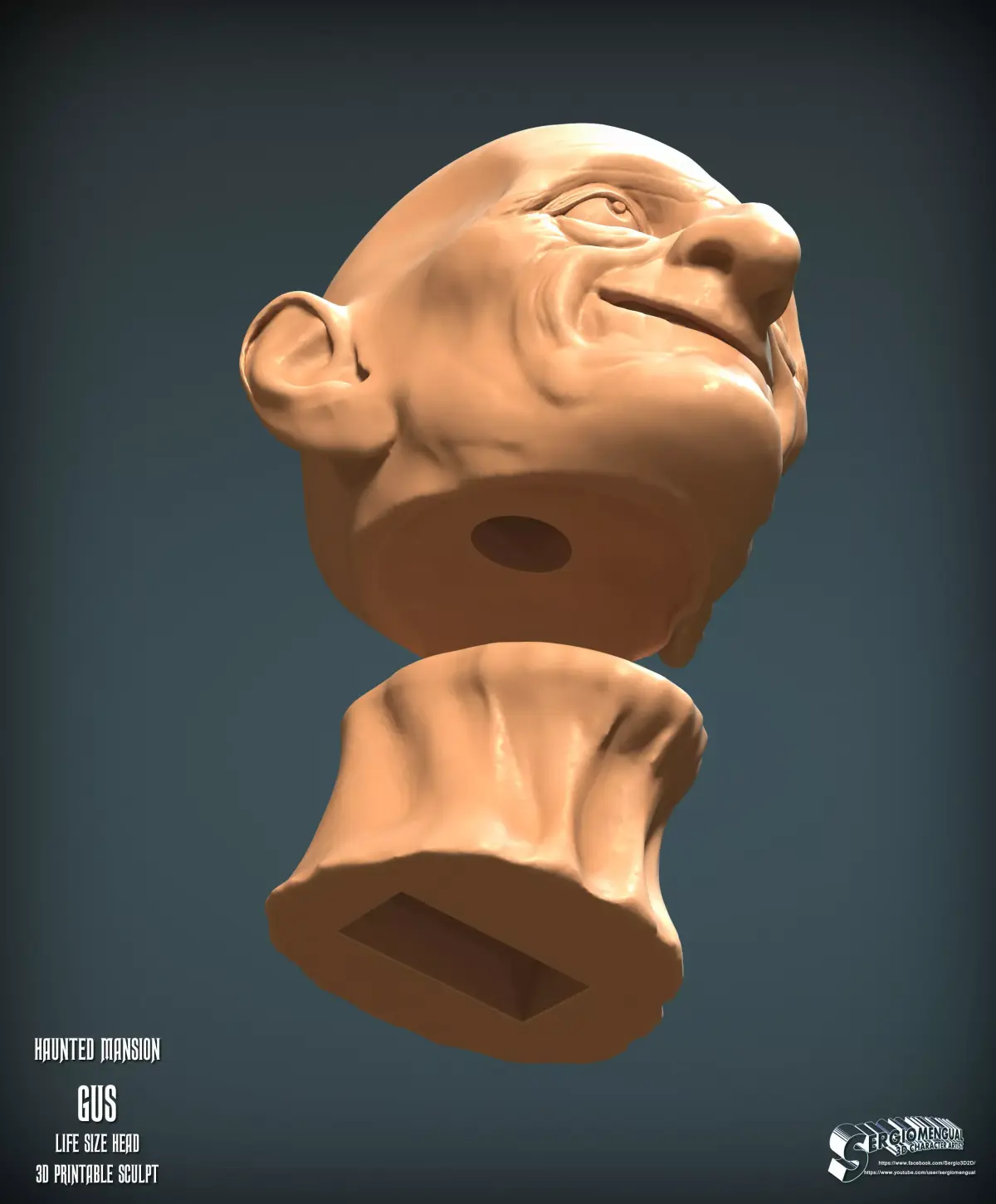 This is my version of the Gus head, The Chained Ghost, from the Hitchhiking Ghosts you can see on Disney's Haunted Mansion, done in Life Size and with no sculpted hair, to allow you to build your own life-size animatronic, and add real hair, etc.