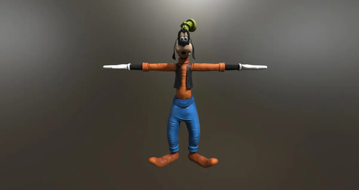 This is a 3D model of Disneys Goofy. It was originally modelled in 3ds Max 20, textured and rendered with 3D-COAT.No animations included with this file.