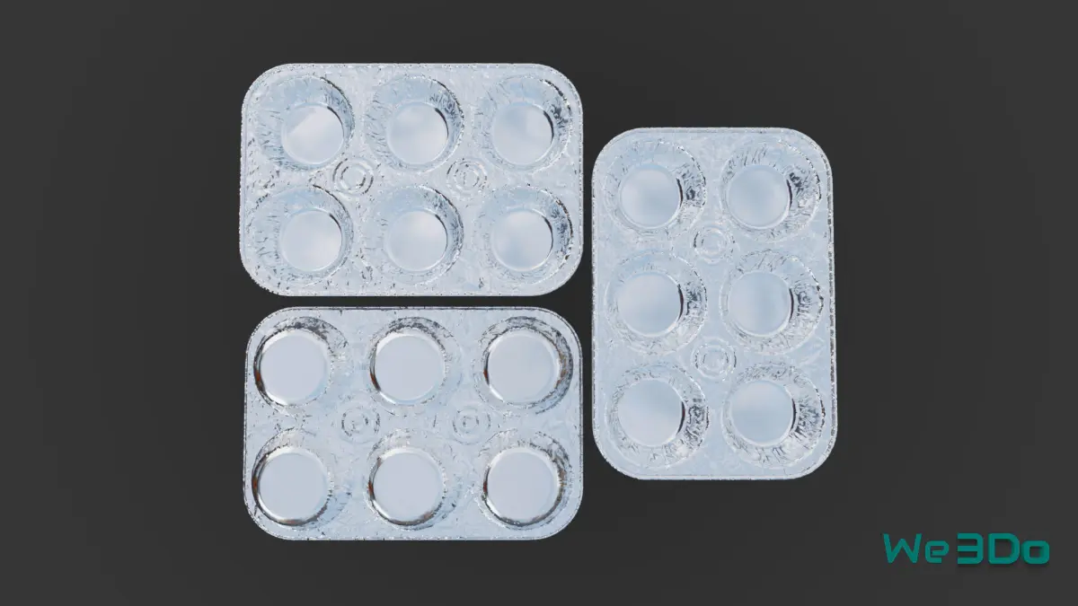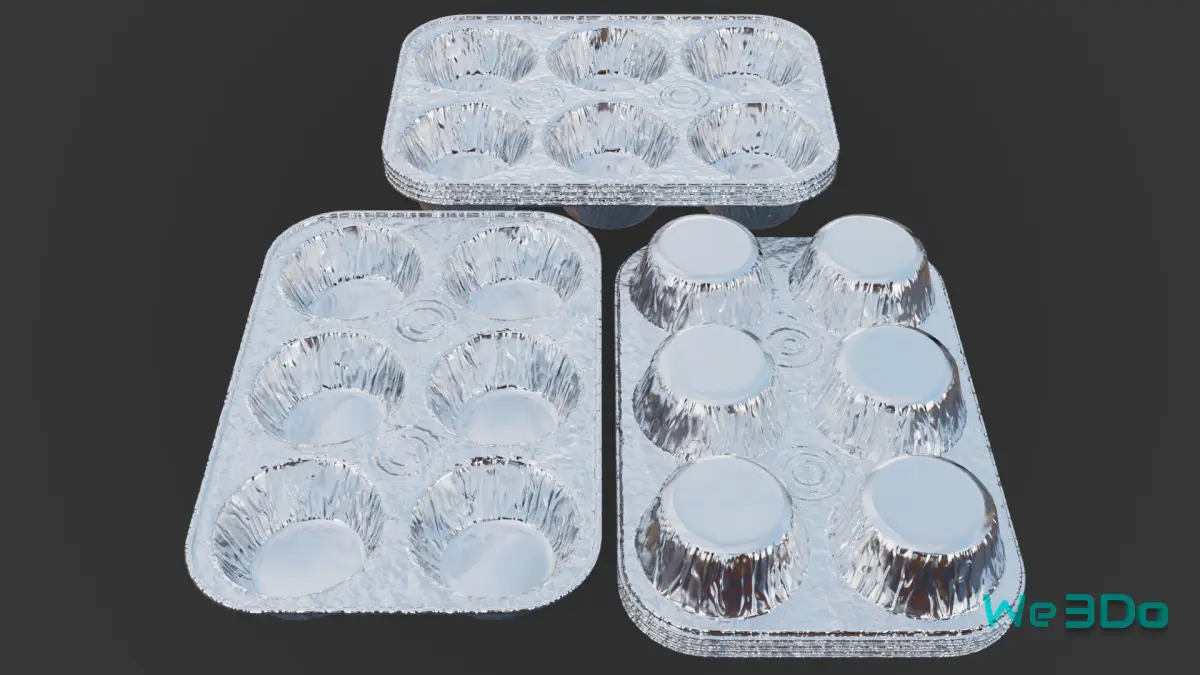 This 3D model is a Disposable Aluminum Cupcake Muffin Pans