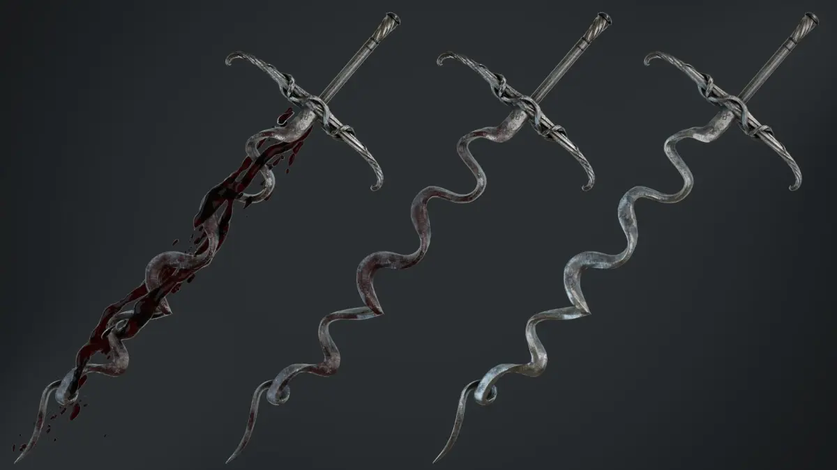 This sword is unique and fearsome. The first thing most people notice about this piece is the distorted waved blade. Also, along with the sword model, there is a blood model, you can animate it in any engine using the displacement shader. Created for game engines. (Ideal for souls like games), but at the same time, the detailing allows you to use the sword model for high quality renders. Pay attention to the renders of the Sword model and Blood model, for clarity, they are all made in different engines.