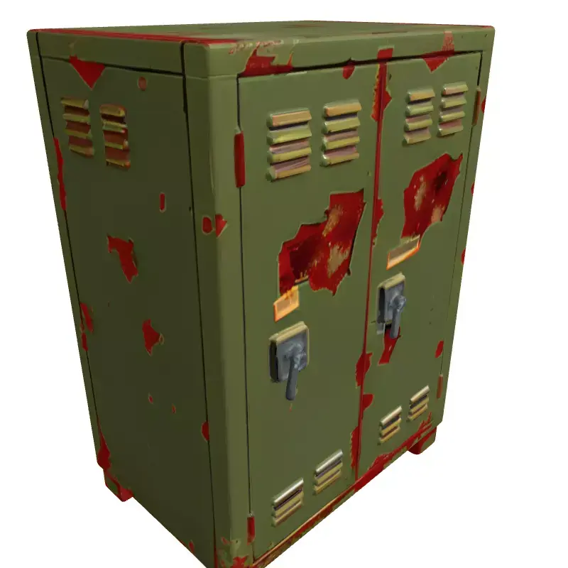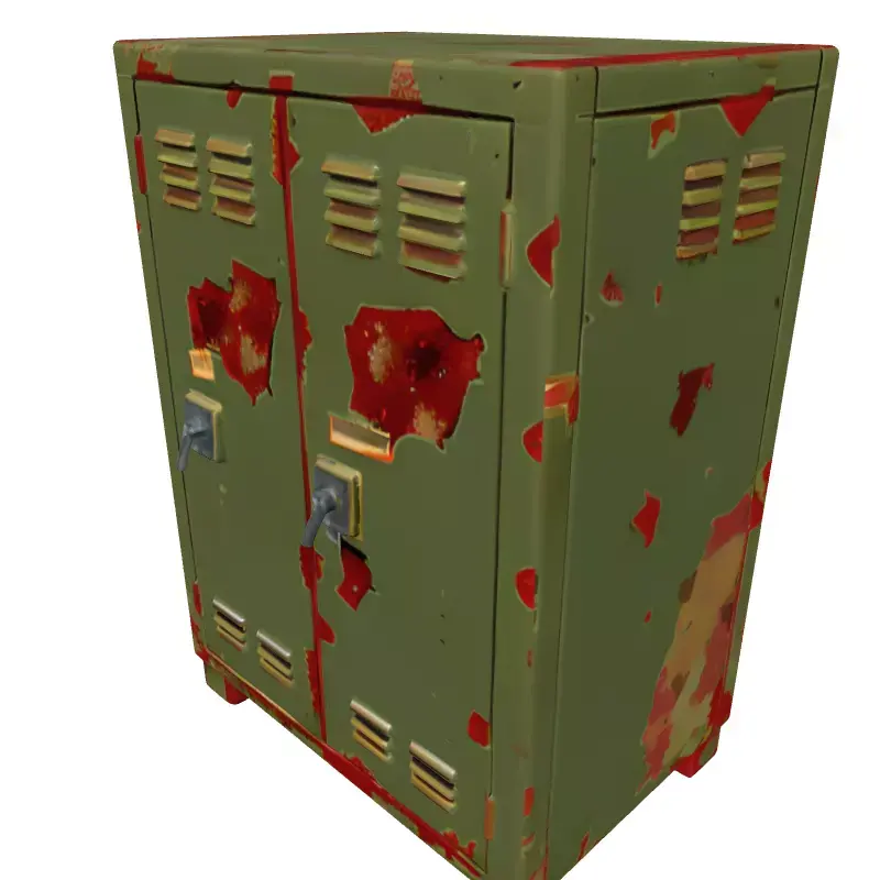 This highly detailed 3D model represents a distressed industrial metal locker, featuring a vibrant, faded green paint finish heavily weathered with extensive rust and peeling effects. The design captures an authentic vintage or post-apocalyptic aesthetic, perfect for adding realism and character to various digital environments. It is meticulously crafted with clean topology, making it suitable for both close-up renders and integration into larger scenes. The model is fully UV unwrapped and comes with a comprehensive set of PBR (Physically Based Rendering) textures, ensuring photorealistic rendering across different lighting conditions and engines. Ideal for game development, this asset can enrich post-apocalyptic settings, abandoned buildings, horror games, or industrial environments. It also serves as an excellent prop for architectural visualizations requiring a raw or gritty feel, as well as for film, animation, and AR/VR applications where environmental storytelling is key. The model is optimized for real-time applications while maintaining a high level of visual fidelity, ensuring efficient performance without sacrificing detail. Supported file formats likely include GLB, FBX, OBJ, USD, ABC, DAE, and PLY, providing versatility for various 3D pipelines. Its detailed textures and robust construction make it a valuable addition to any asset library seeking authentic, aged industrial props.