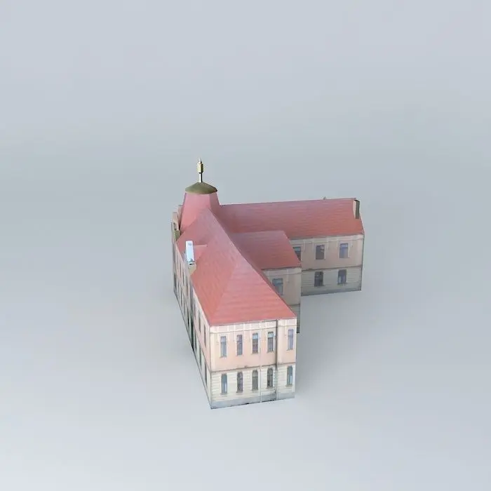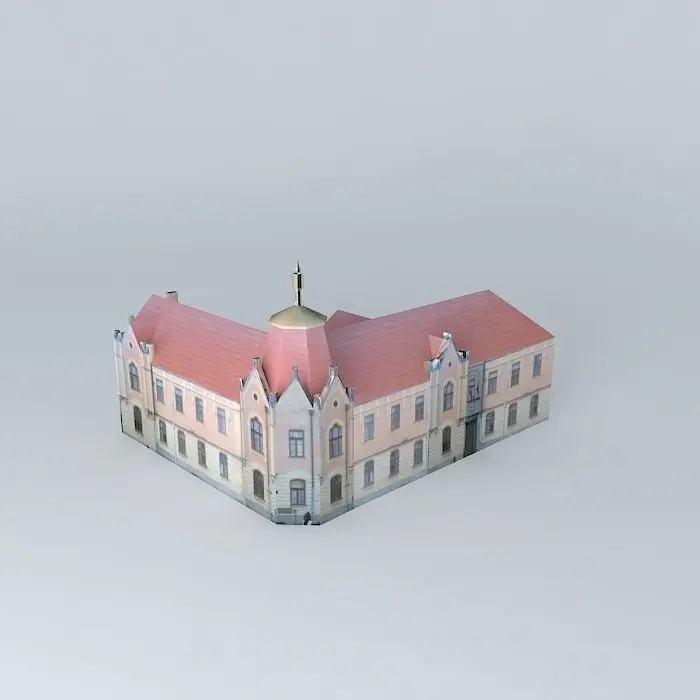 This 3D model was originally created with Sketchup 8 and then converted to all other 3D formats. Native format is .skp 3dsmax scene is 3ds Max 2016 version, rendered with Vray 3.00 Two-storey L-shaped building is decorated with contemporary façade