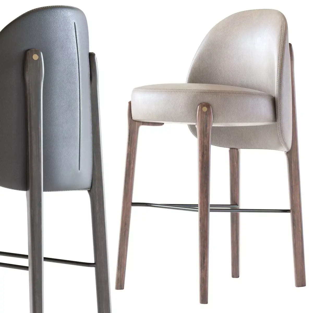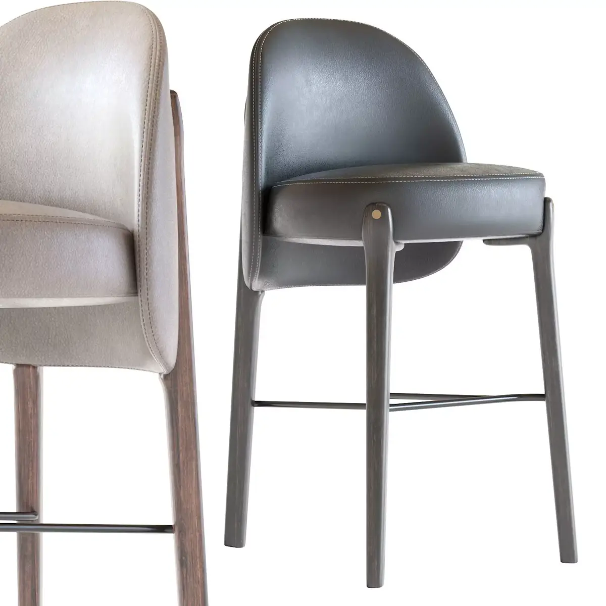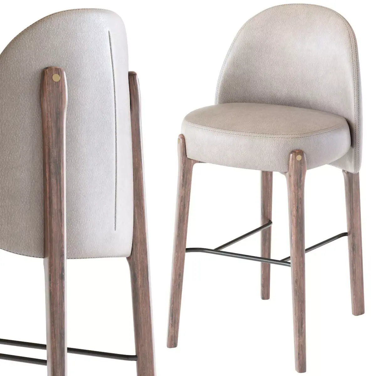 There are many different types, construction materials and models. Bar stools are often made of wood or metal. There are bar stools with and without armrests, backs, and padding or upholstery on the seat surface. Bar stools can range from basic wooden designs to more complex ones with adjustable height. Extra tall and extra short are common features, as well as indoor bar stools and outdoor bar stools. Some bar stools have backs, while most do not. In commercial settings, swivel and floor mounted bar stools are common. Floor mounting renders the stool immovable, so it cannot be stolen or used as a weapon in a bar fight. Floor-mounted stools generally are mounted on a column, but stools with legs can also be secured to the floor using metal brackets.