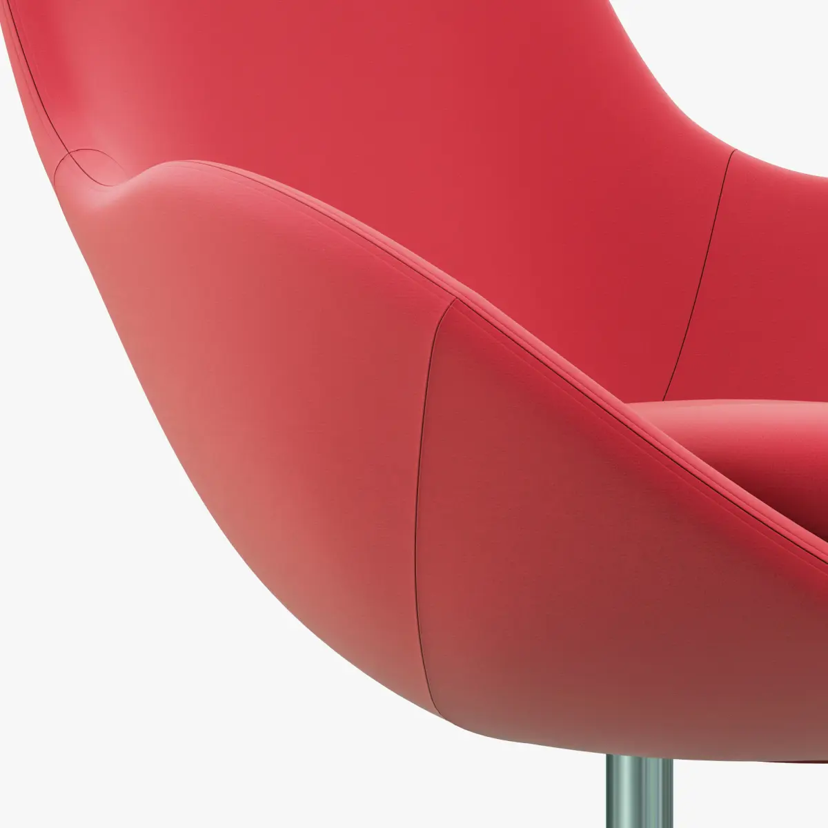 The Linear chair brings to mind classic shapes, made over in a modern key. The wrap around seat and the tall backrest make it very comfortable. Available with a swivel base in metal or in Eucalyptus wood. Linear is available leather or fabric upholstered or in the special mixed version featuring fabric and leather together that enhances its beauty thanks to the detailed workmanship