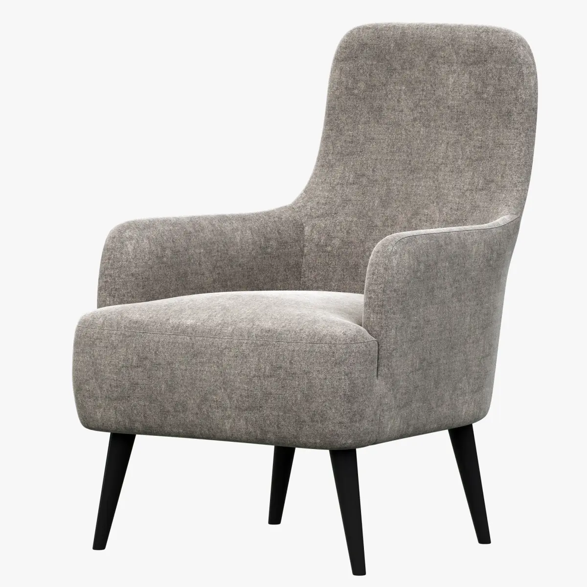 An armchair with allembracing and comfortable lines, with elegant wood feet that add sophisticated appeal, for a perfect balance of vintage and modern design.