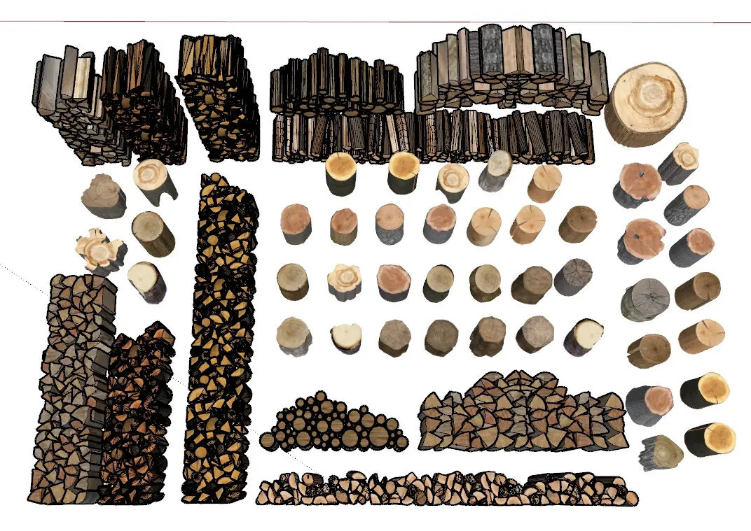 Model Introduction:Gathers various forms of neatly arranged woodpiles, including neatly stacked chopped firewood, log sections, etc., accurately presenting wood textures and stacking textures. Suitable for rural, retro, and natural - style scene construction, providing rich wood element reserves for landscape design, architectural decoration, film and television props, etc.Applicable Scenarios:Natural - style construction in landscape design, wood element supplement for architectural decoration, rural prop arrangement in film and television scenes, pastoral - style space atmosphere creation, material library filling for handmade DIY