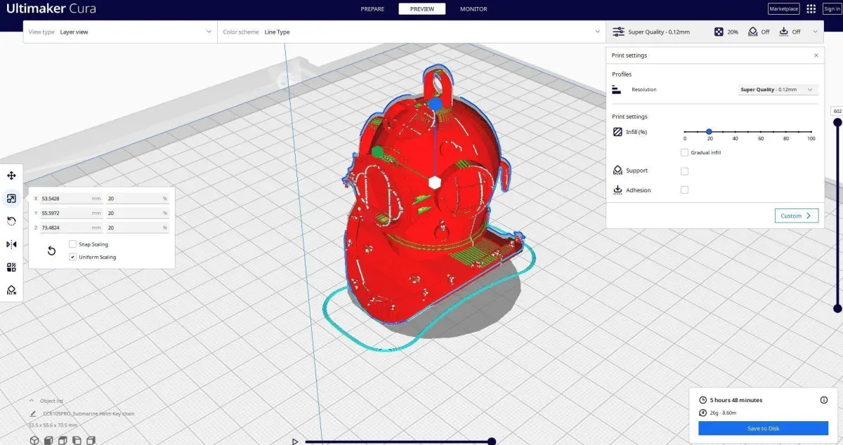 3D MODEL SIZE X 53.5 × Y 55.6 × Z 73.5 mm