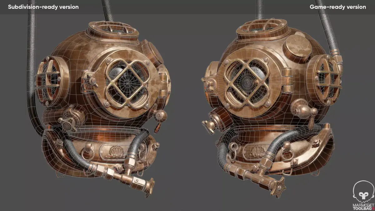 Each model version has its own dedicated texture set. Textures are not interchangeable between the subdivision and the game-ready versions.