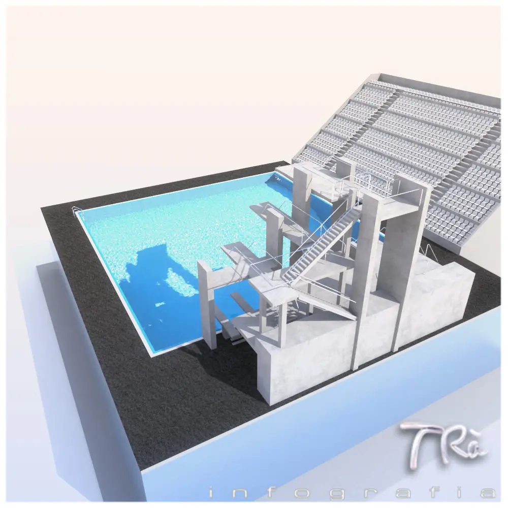 Model of diving pool outdoor,modeled with Max 2010 and Vray materials. Includes materials and maps.