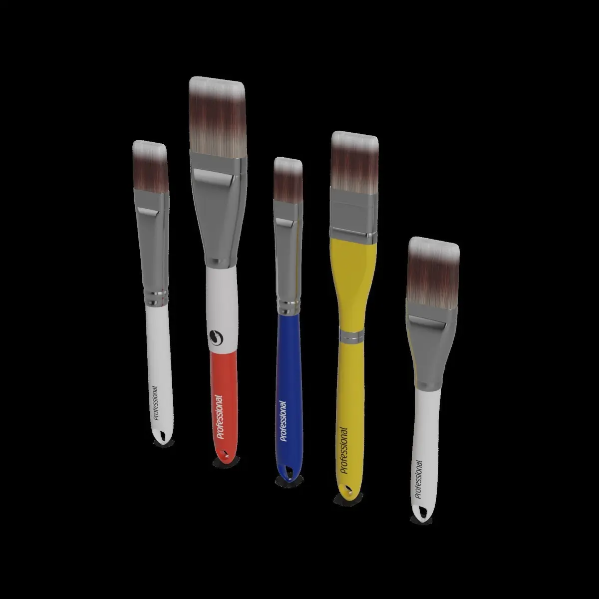 Paintbrush Set: This set includes a range of paintbrushes in different sizes. The packaging is a cardboard box with a clear plastic window, allowing you to see the paintbrushes. The label on the packaging features a graphic of a paintbrush and the text Professional Paintbrush Set - Ideal for all your painting needs.