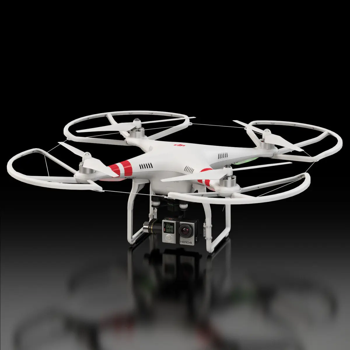 • Let me present to you high-quality low-poly 3D model DJI Phantom 2 Quadcopter with Propeller Guard, Zenmuse H4-3D gimbal for GoPro Hero4 or 3 and GoPro HERO4 action camera. This model can be used in various fields 3D Graphics such as game development, advertising, interior design, motion picture art, visualization, etc... Modeling was made with ortho-photos of real quadcopter, camera and gimbal that is why all details of design are recreated most authentically.