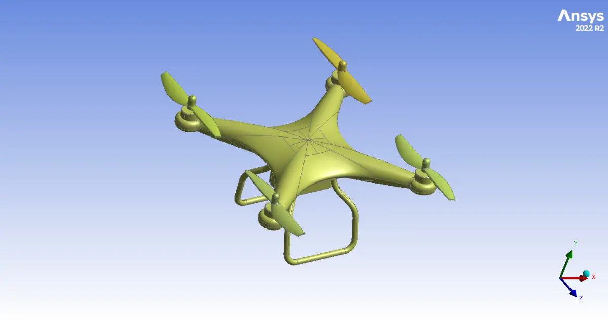 - Separate propellers and main body of drone for easy create multiple computational domain (for sliding mesh, MRF... to simulate the rotational motion)