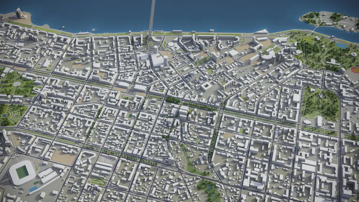 - Full city extents up to 100 x 100 km — or crop to an area of interest for better format compability and scene performance