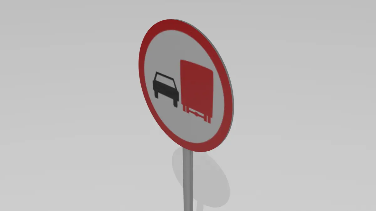 A do not overtake heavy vehicles sign modeled to specs, with materials and texture applied.