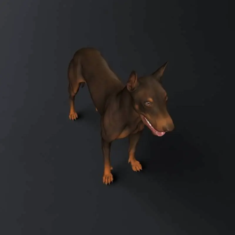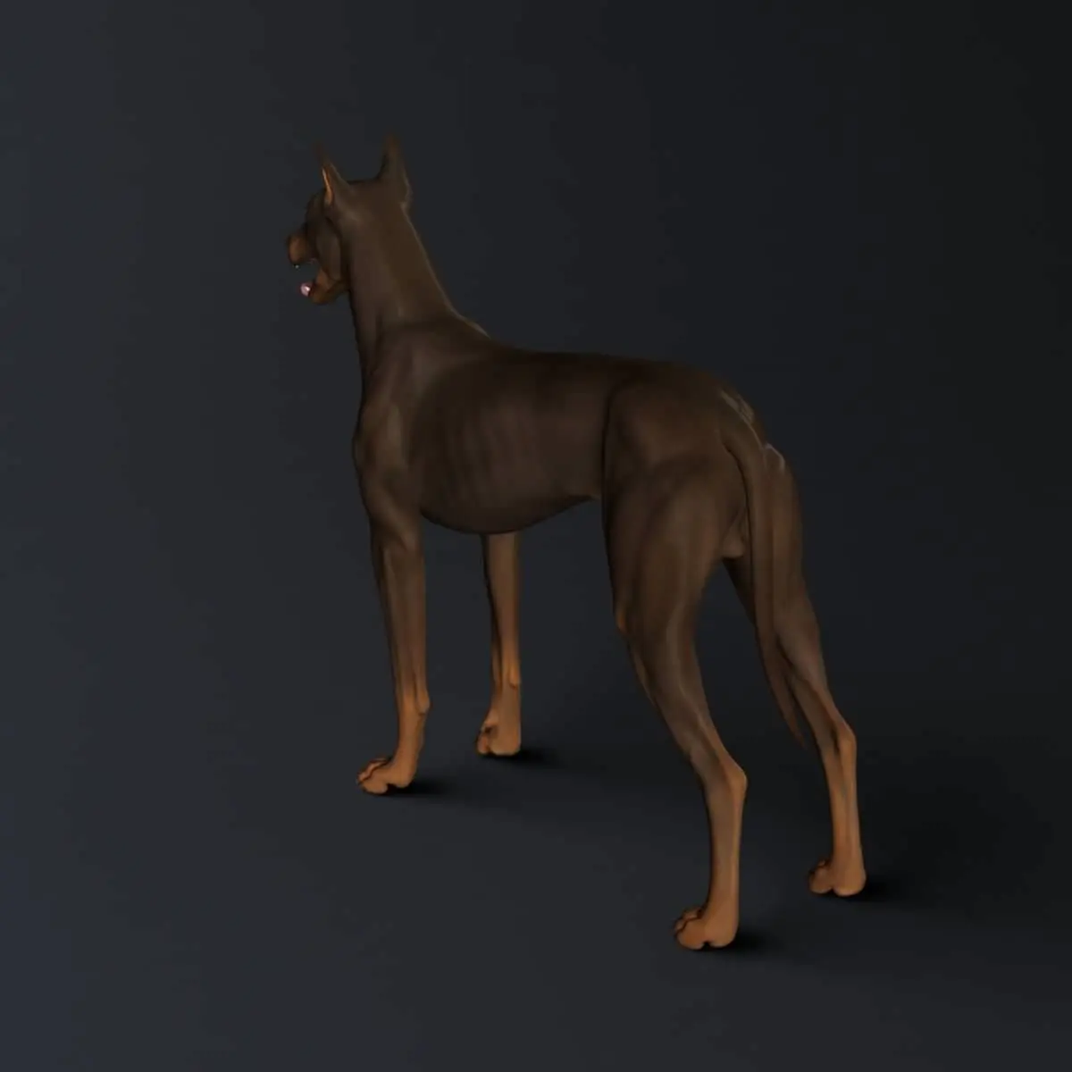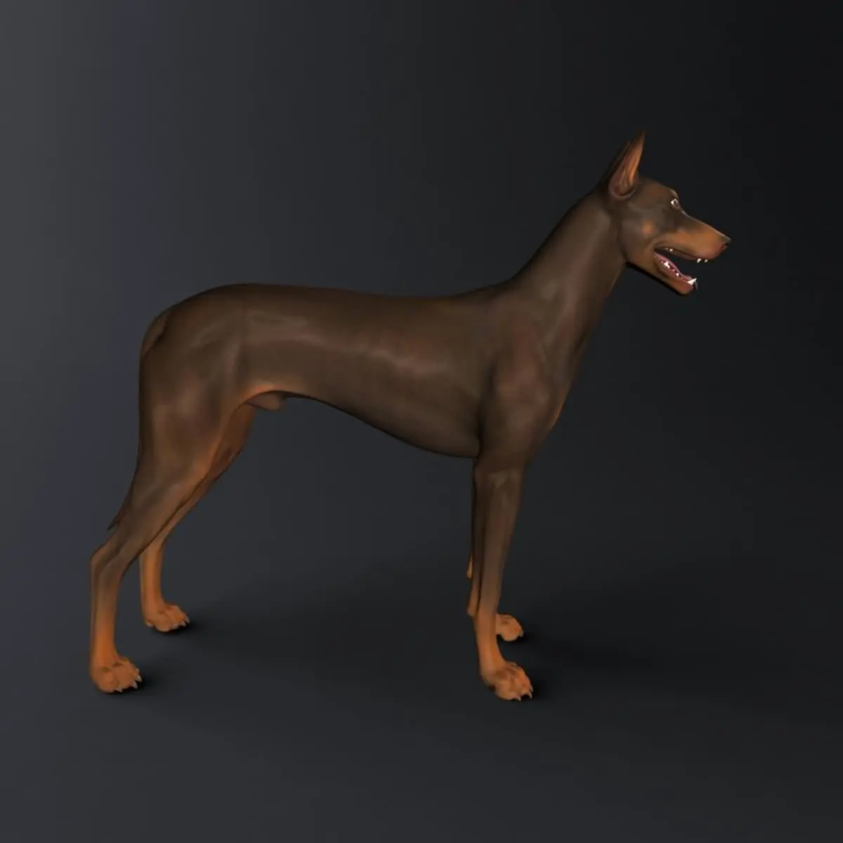 Polygonal model of a Doberman type dog in Maya mb, ma, OBJ, ZBrush (v. 4R2b) Collada (dae) and FBX formats in this download (all zipped into one folder called DOG). Instructions for importing the dae and fbx formats are included. The base mesh can be subdivided.