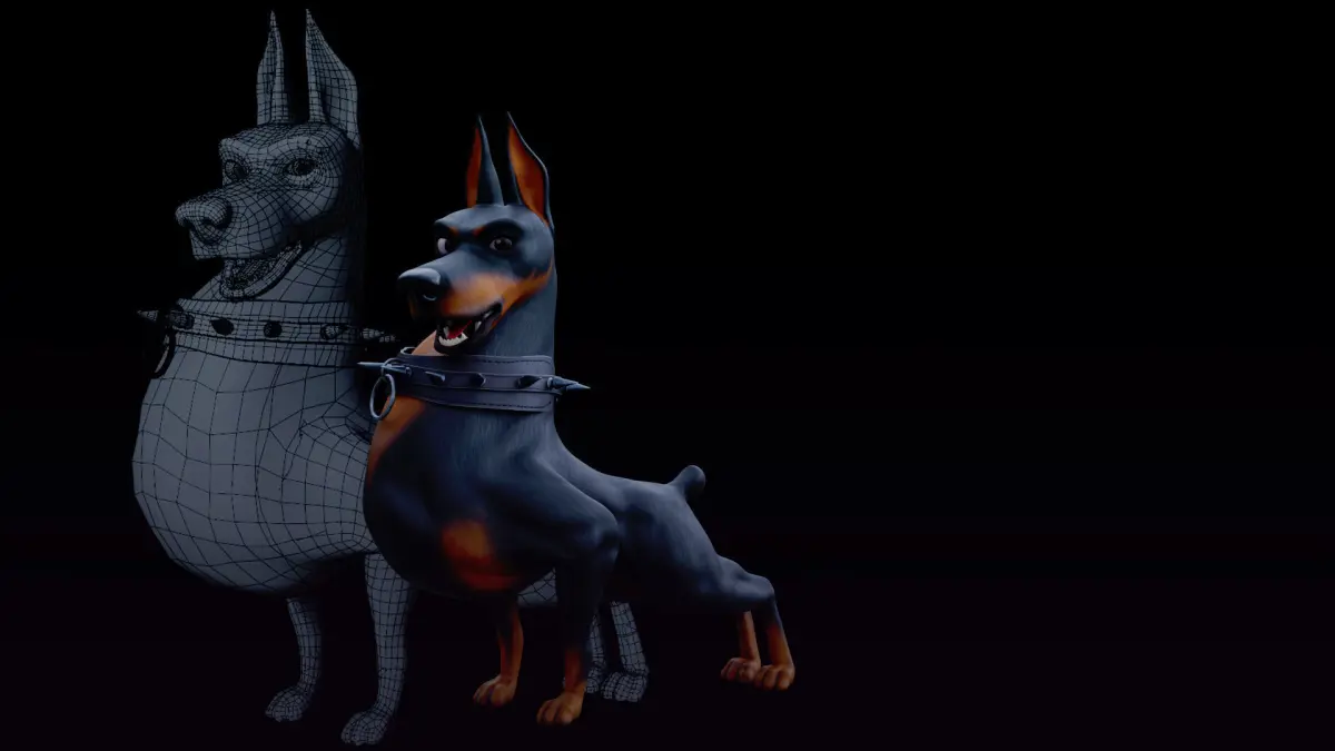 Introducing a high-quality, hand-painted 3D model of a stylized Doberman. This rigged character is perfect for close-up renders and animations. The model is fully textured with a detailed design, making it an excellent addition to your projects.