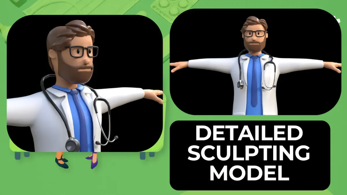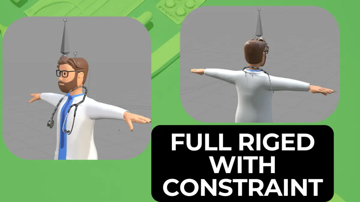The Doctor Character is Fully rigged with add full constraint to rig in detail like face emotions (happy, sad etc...), dancing, jumpping etc... So that the character also use in kid's rhyms.