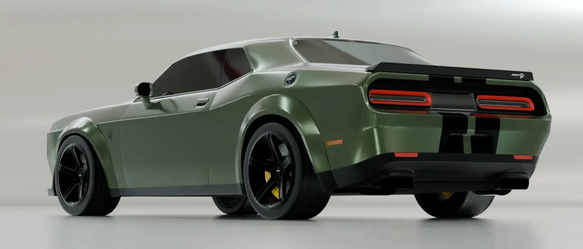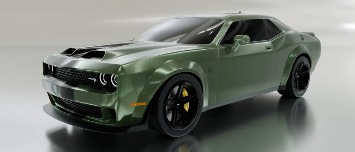 Dodge Challenger SRT Hellcat model. The model was made in blender 4.0. Render made in Cycles. The model has textures 4096x4096. The car has no interior.